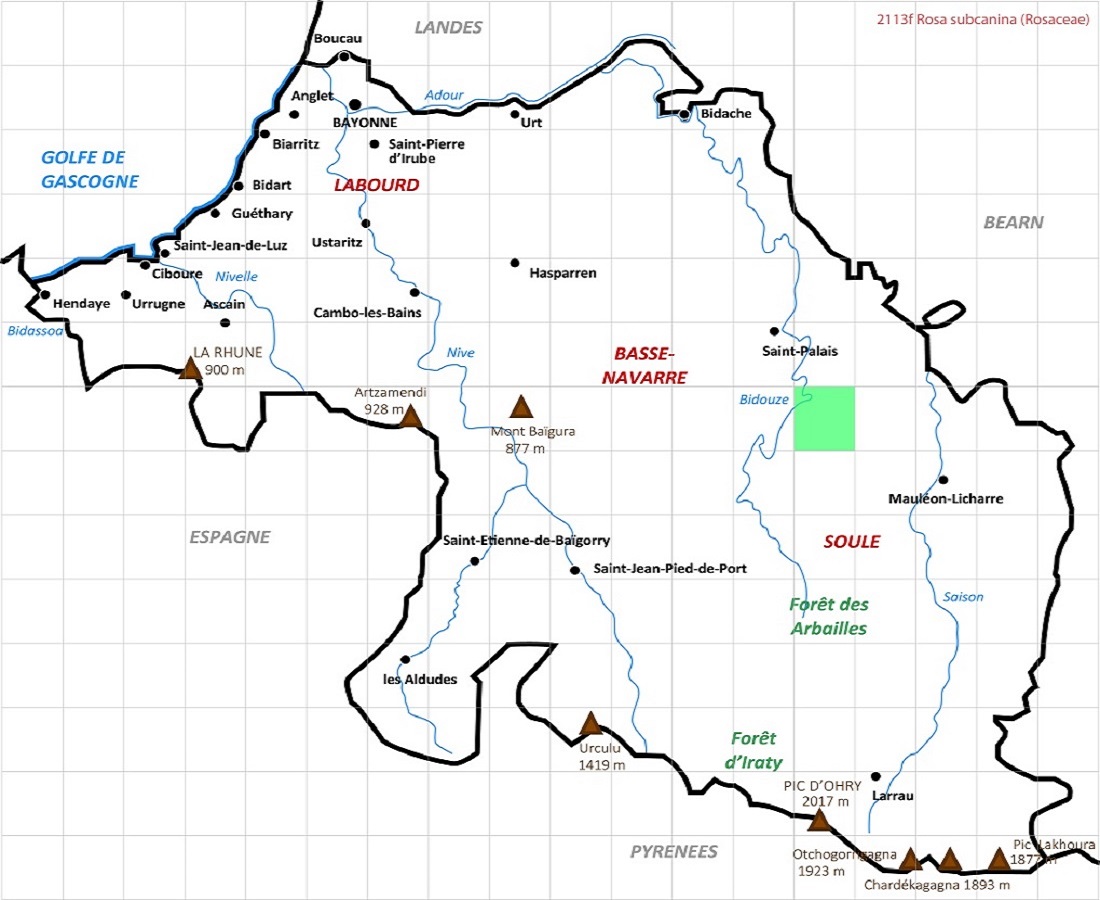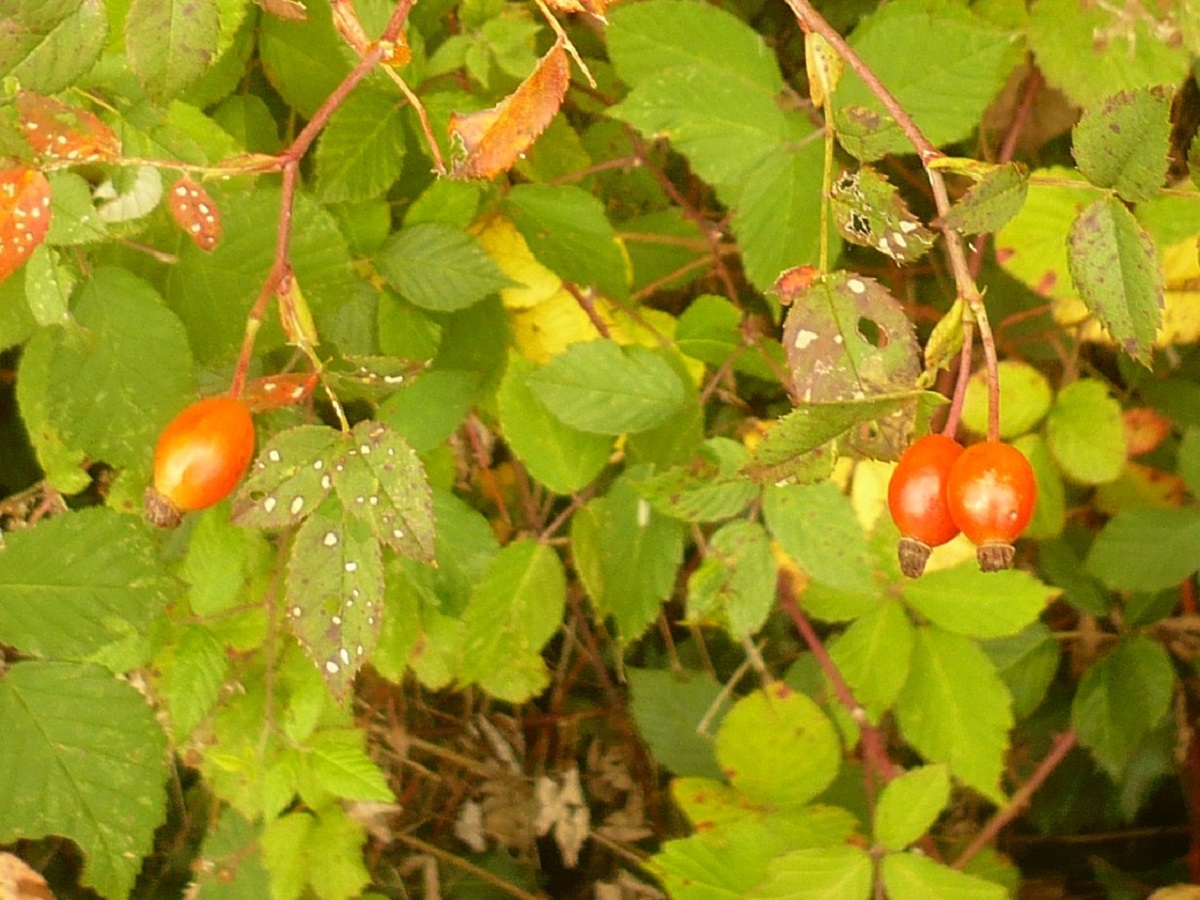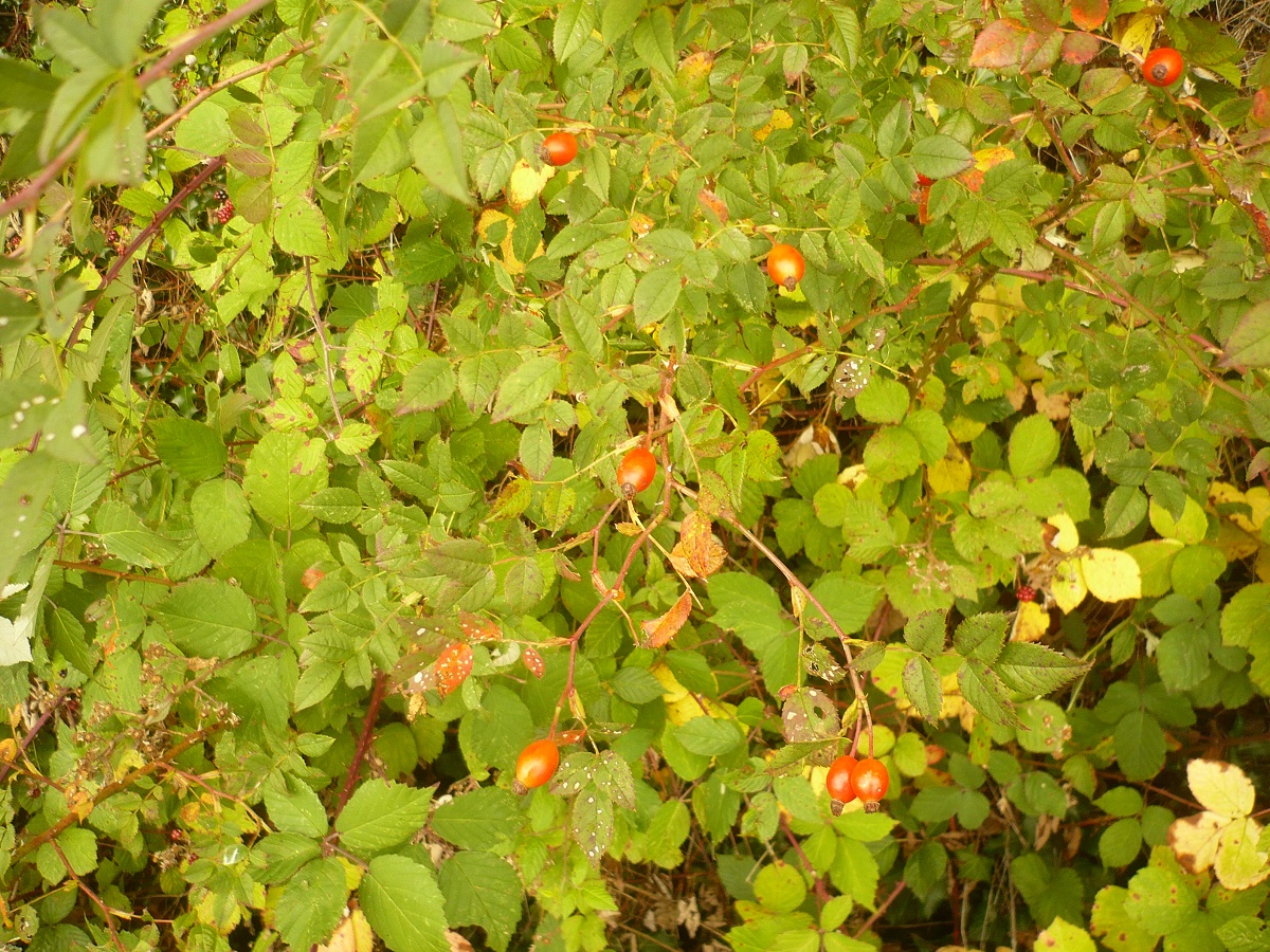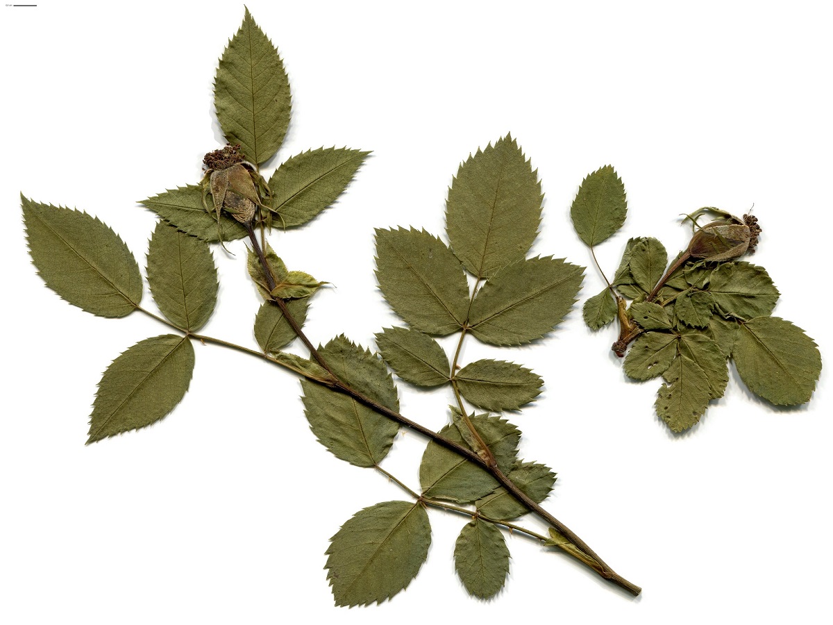 NPh – 1-3 m – Aiguillons arqués, 5-7 folioles glabres à dents simples – Fleurs de Ø 4-8 cm ± roses, sépales réfléchis, caducs – ’’Fruit’’ rouge à disque étroit, pédicelle L de 2-3 cm ± glabre