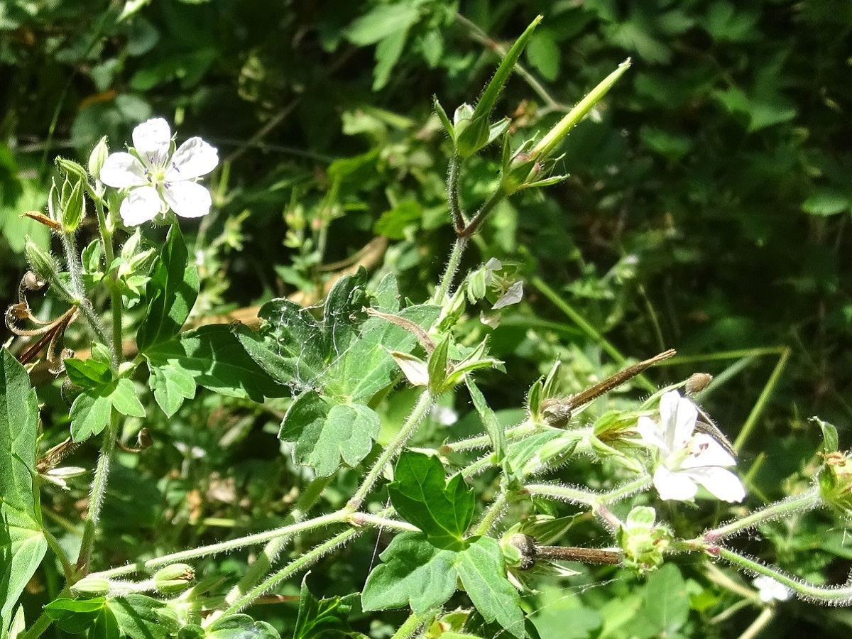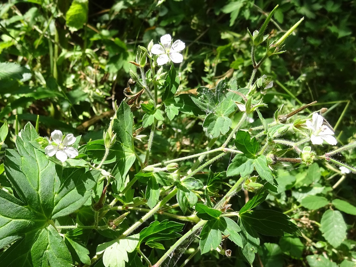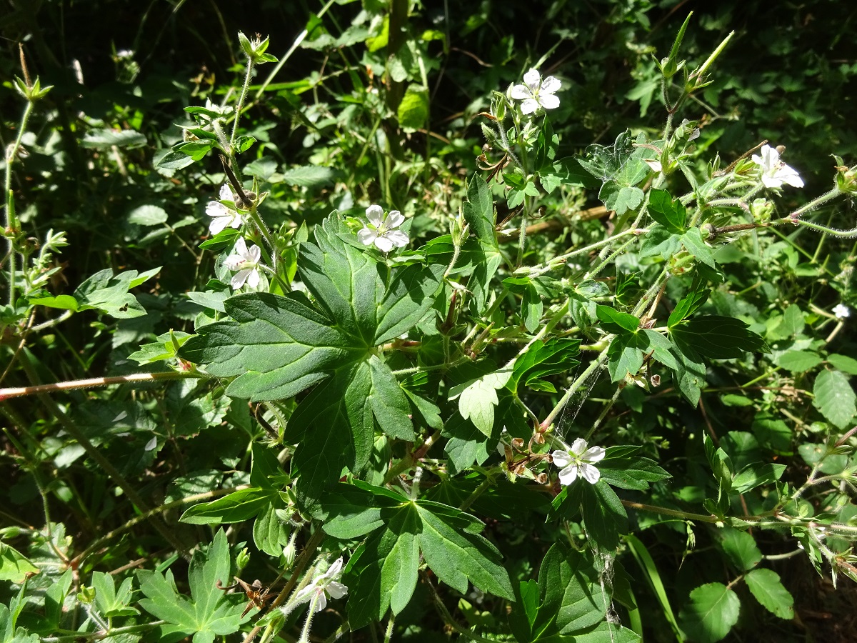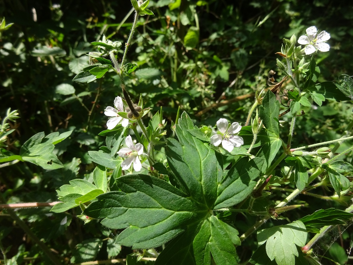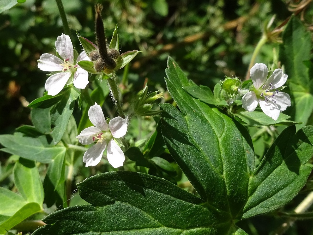 Hc – 2-5 dm – Poils rétrorses, feuilles à 5-7 lobes ovales ± incisés dentés – Fleurs en coupe de Ø ≃ 1,5 cm à 5 pétales obovales blancs, sépales aristés – Fruit à bec, méricarpes velus