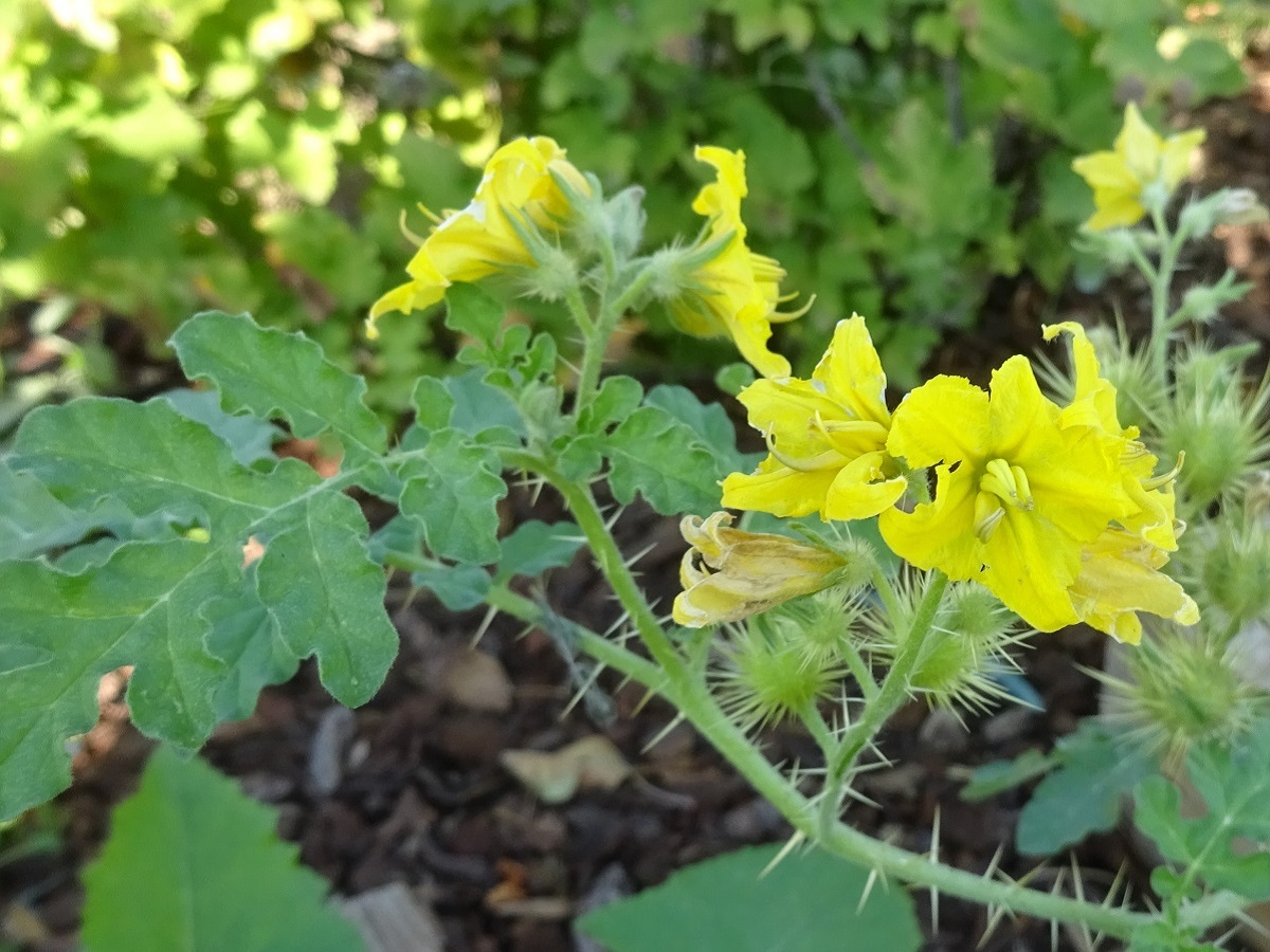 Th – 3-6 dm – Plante épineuse, feuilles à segments obtus et lobés – Corolle de Ø 2-3 cm jaune vif à lobes récurvés, étamine < cornue – Baie logée dans le calice accrescent épineux