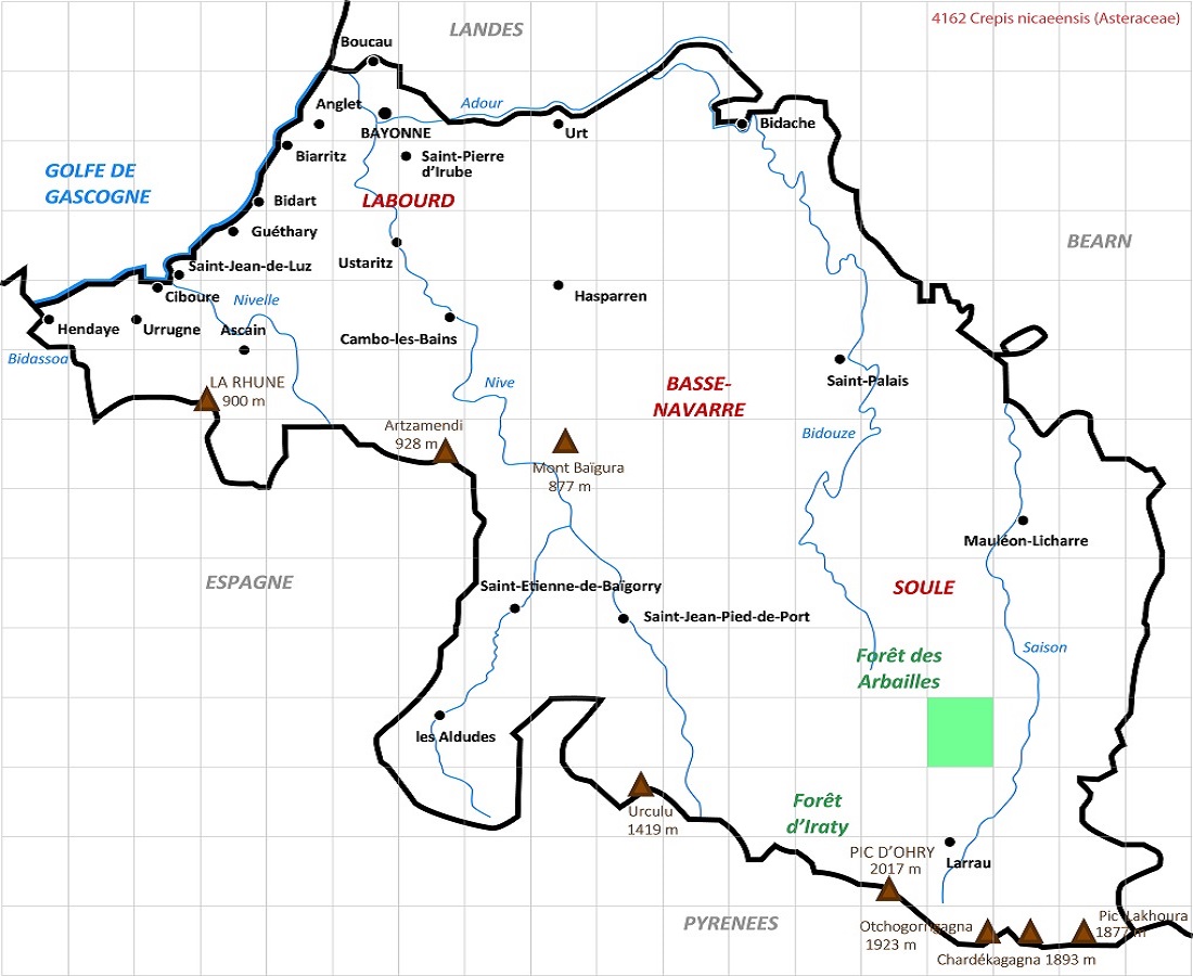 Nom Latin du taxon (Famille) Crepis nicaeensis (Asteraceae) - Synonymes Latins - nc Nom Français du taxon Crépide de Nice - Autres Noms Français - nc Nom en Euskara nc - Autres Noms en Euskara - nc Identifiant 4162