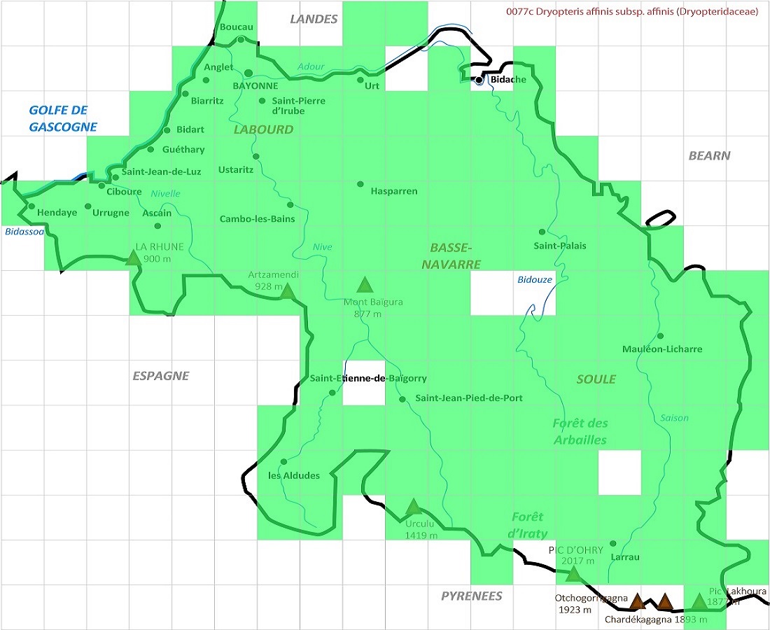 Hc – 5-10 dm – Limbe luisant ± coriace + large au milieu, 2 fois divisé, pennes étroites lancéolées, pinnules à peine dentées, rachis hirsute à écailles denses – Sores bruns, ronds