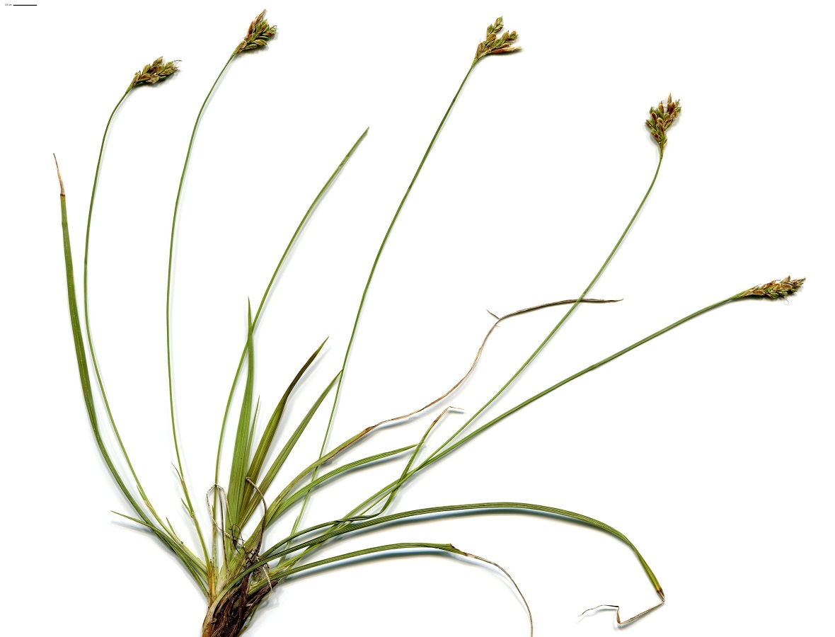 Hc – 0,5-2 dm – Feuilles ± rudes – Inflorescence digitée compacte, 1 épi ♂ < minuscule, 2-3 épis > ♀ plus longs, à écailles brun-châtain, 3 stigmates – Utricules de L < 3 mm mats velus