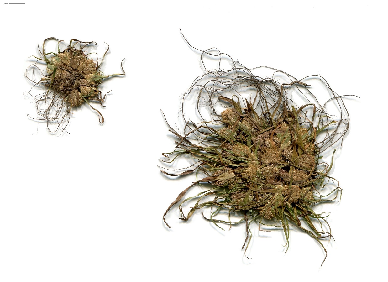 Th – 0,5-2 dm – Prostré, feuilles pliées en V – Inflorescence globuleuse dense, épis de L ≃ 2 mm jaunâtres à 3-8 fleurs, écailles acuminées, à 3-8 longues bractées – Akène brun pâle