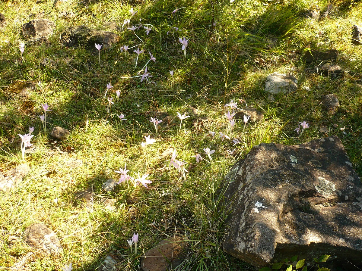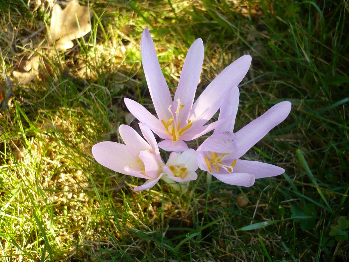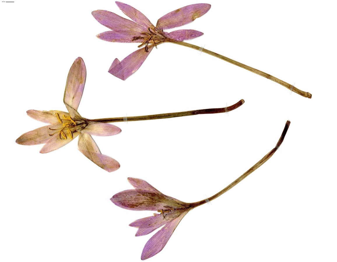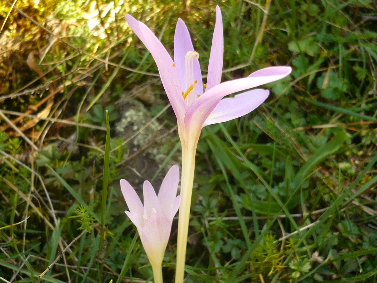 G à corme – 1-4 dm – Feuilles estivales longues, lancéolées, enserrant la capsule de type 3 – Grande fleur automnale, à 6 tépales de L 3-5 cm oblongs rose-lilas, soudés à la base