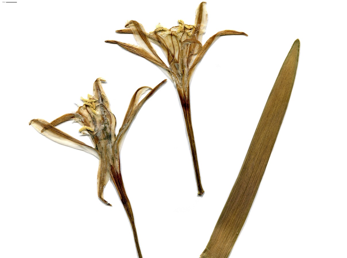 G à bulbe – 2-5 dm – Feuilles allongées, obtuses, ± en spirale – Fleurs de Ø ≃ 10 cm odorantes, blanches, en ombelle, à couronne évasée, lobée, à 6 tépales étroits – Capsule ovoïde
