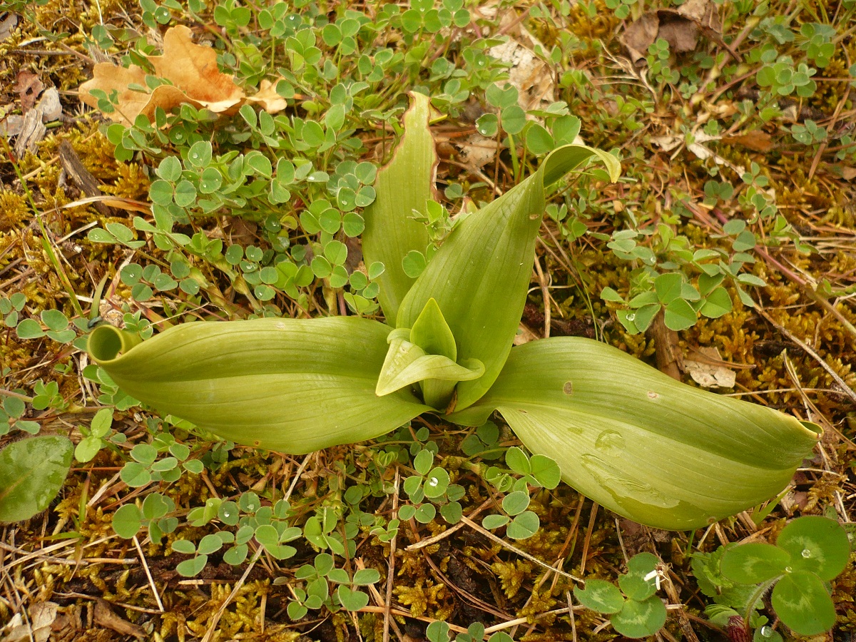 G à tubercule – 3-8 dm – Feuilles larges épaisses – Long épi de fleurs à odeur forte, verdâtres ± pourpres, labelle à 3 lobes, le médian très long de 3-5 cm tordu rubané, tépales en casque