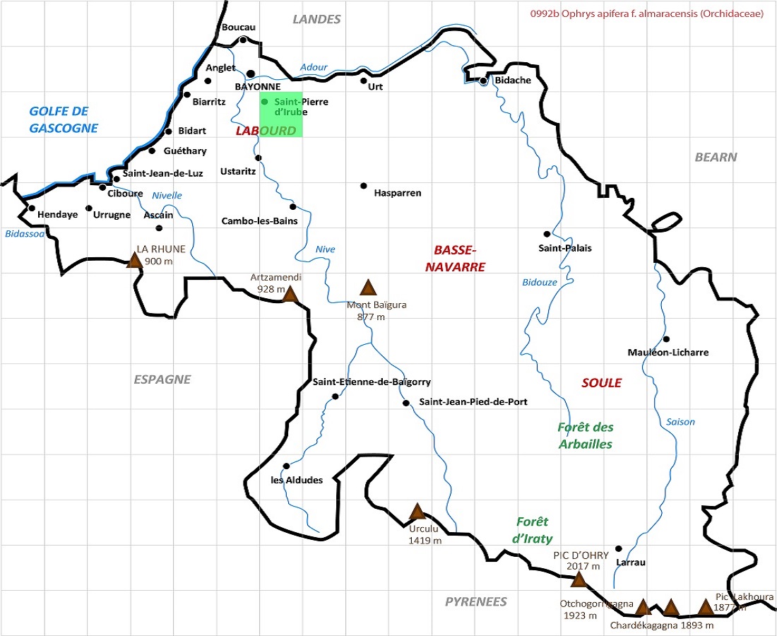 Très rare – Printemps-Été – Pelouses, lisières, coteaux calcaires – Très localisé, à basse altitude, au Pays Basque