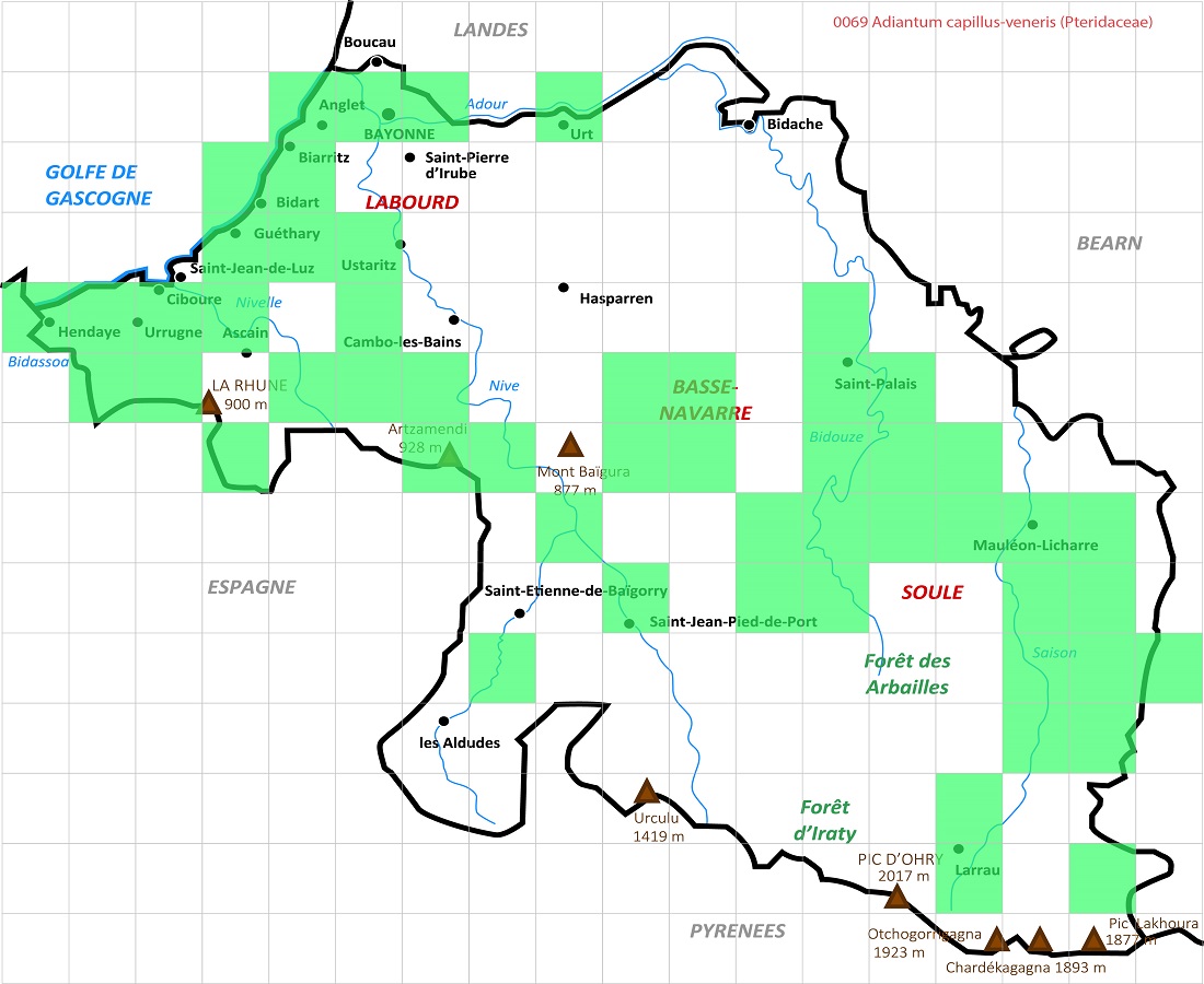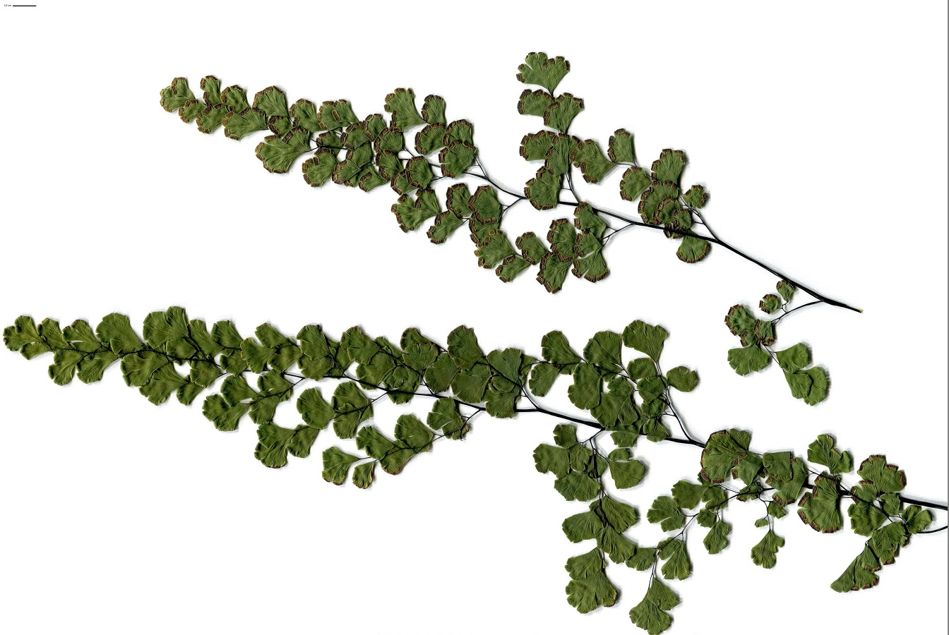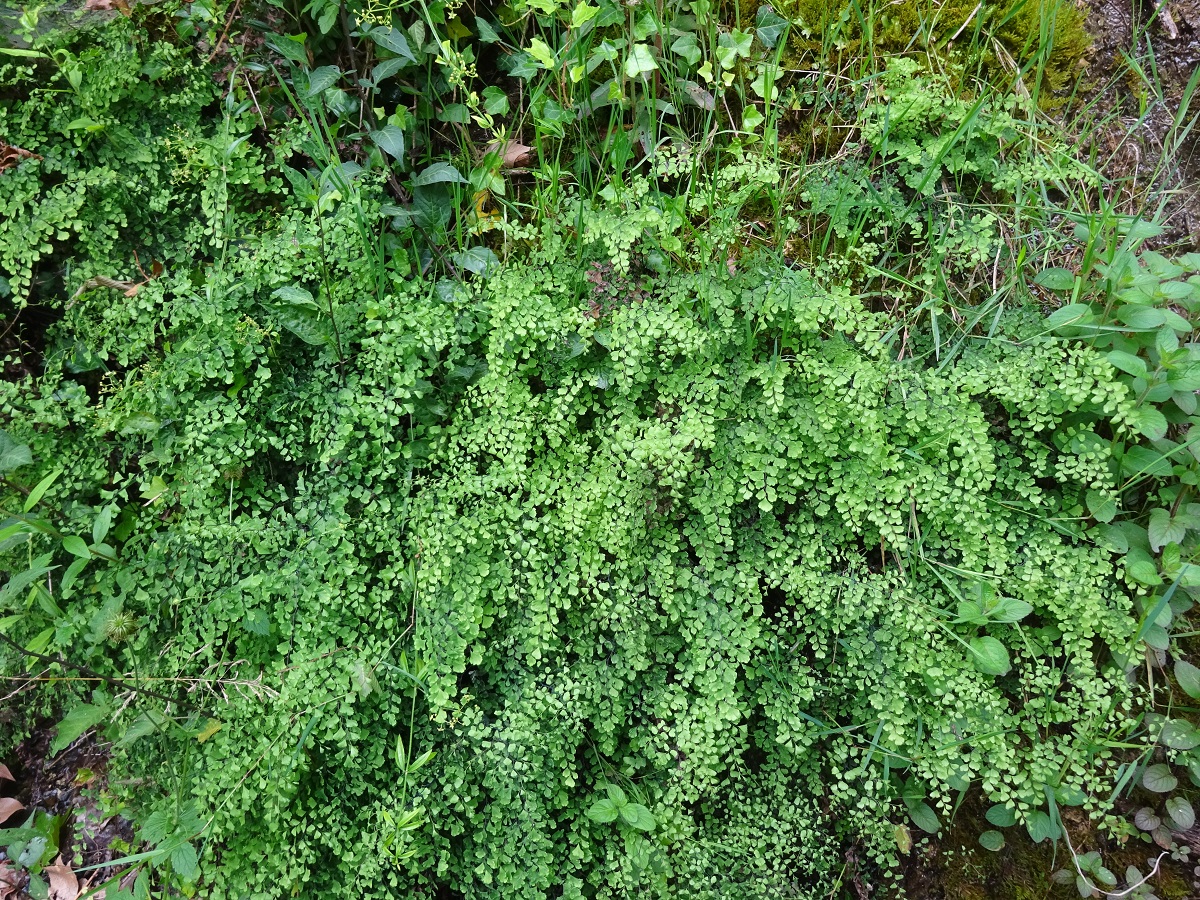 Hc – 1-3 dm – Gracieuse fougère à limbe 2 à 3 fois divisé à pinnules pétiolulées en éventail, rachis et pétiole fins noir brillant – Sores bordant le sommet des pinnules