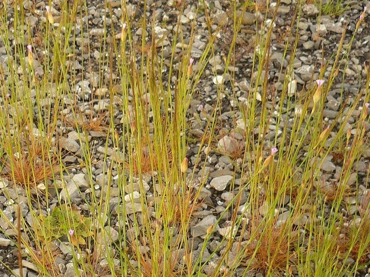 Th – 2-4 dm – Tige dressée, feuilles opposées linéaires à gaine L de 3-4 mm, + longue que large – 5 Pétales roses striés de pourpre, petits échancrés, calice scarieux – Graine rugueuse