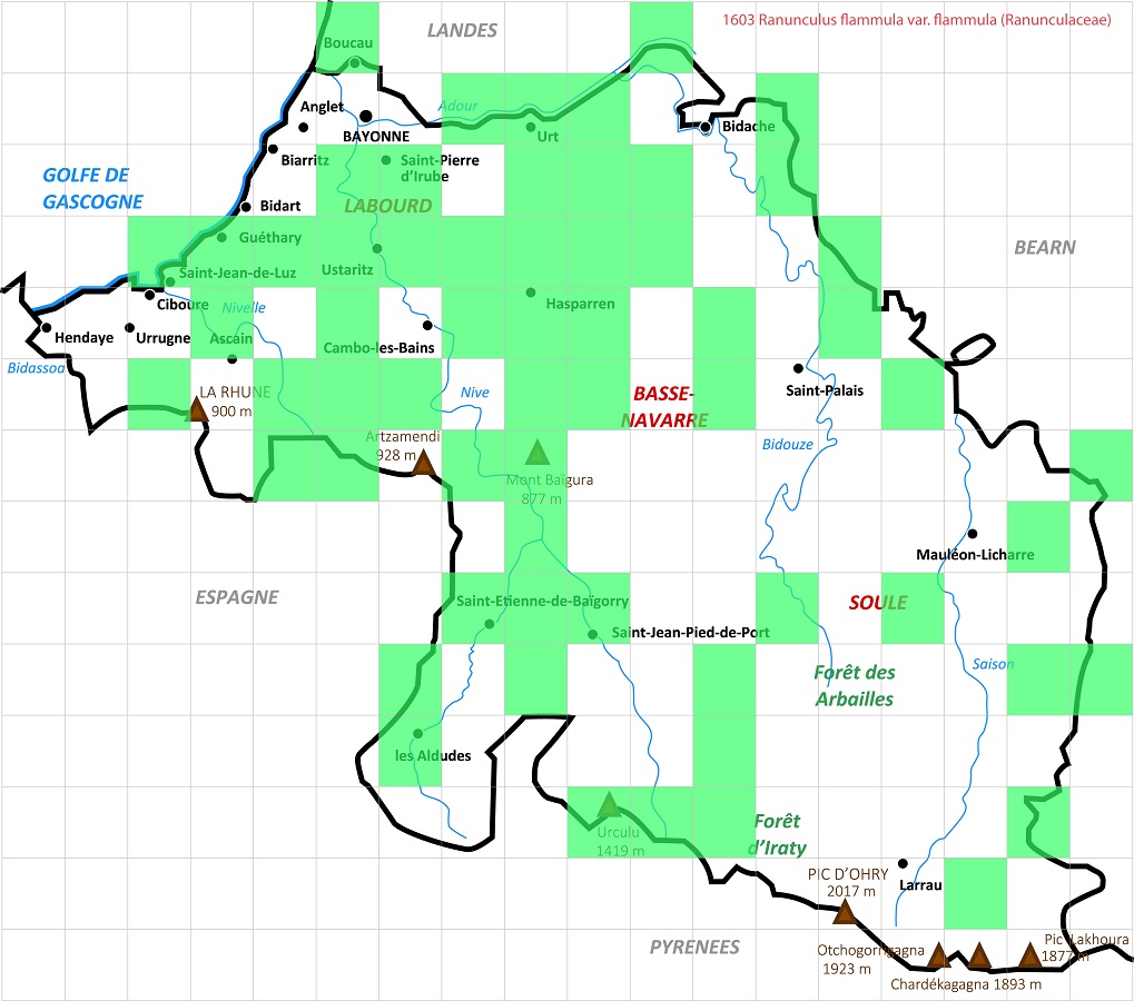 Nom Latin du taxon (Famille) Ranunculus flammula var. flammula (Ranunculaceae) - Synonymes Latins - nc Nom Français du taxon Renoncule flammette - Autres Noms Français - Petite douve Nom en Euskara nc - Autres Noms en Euskara - nc Identifiant 1603