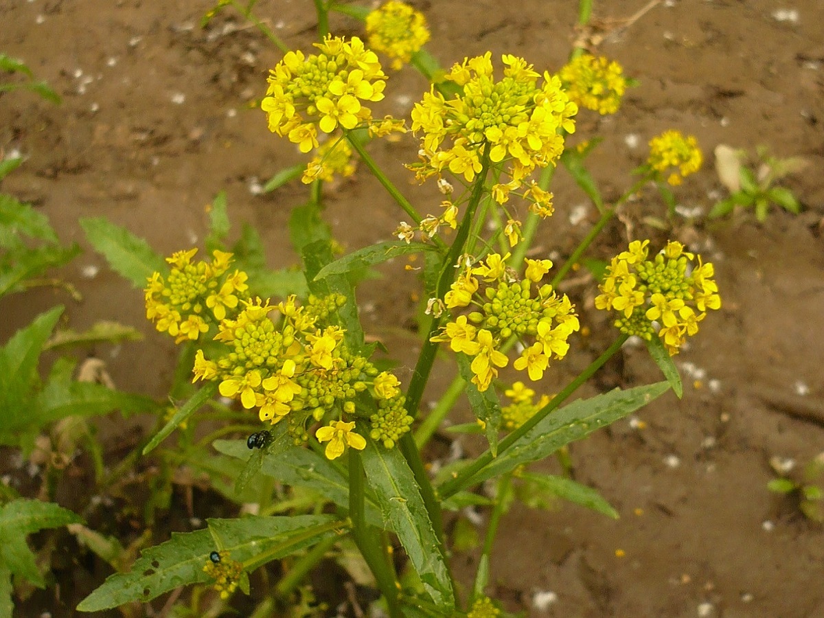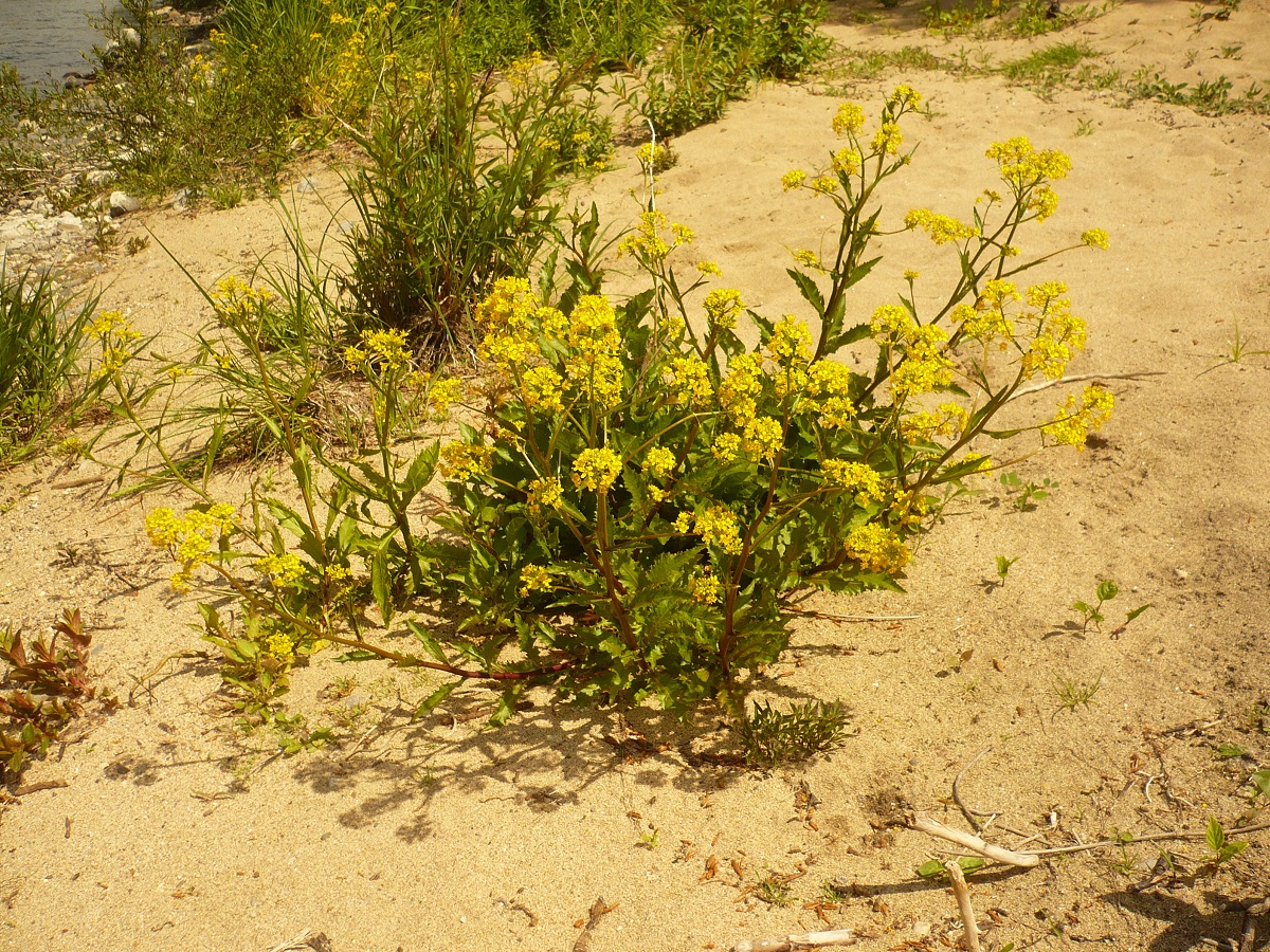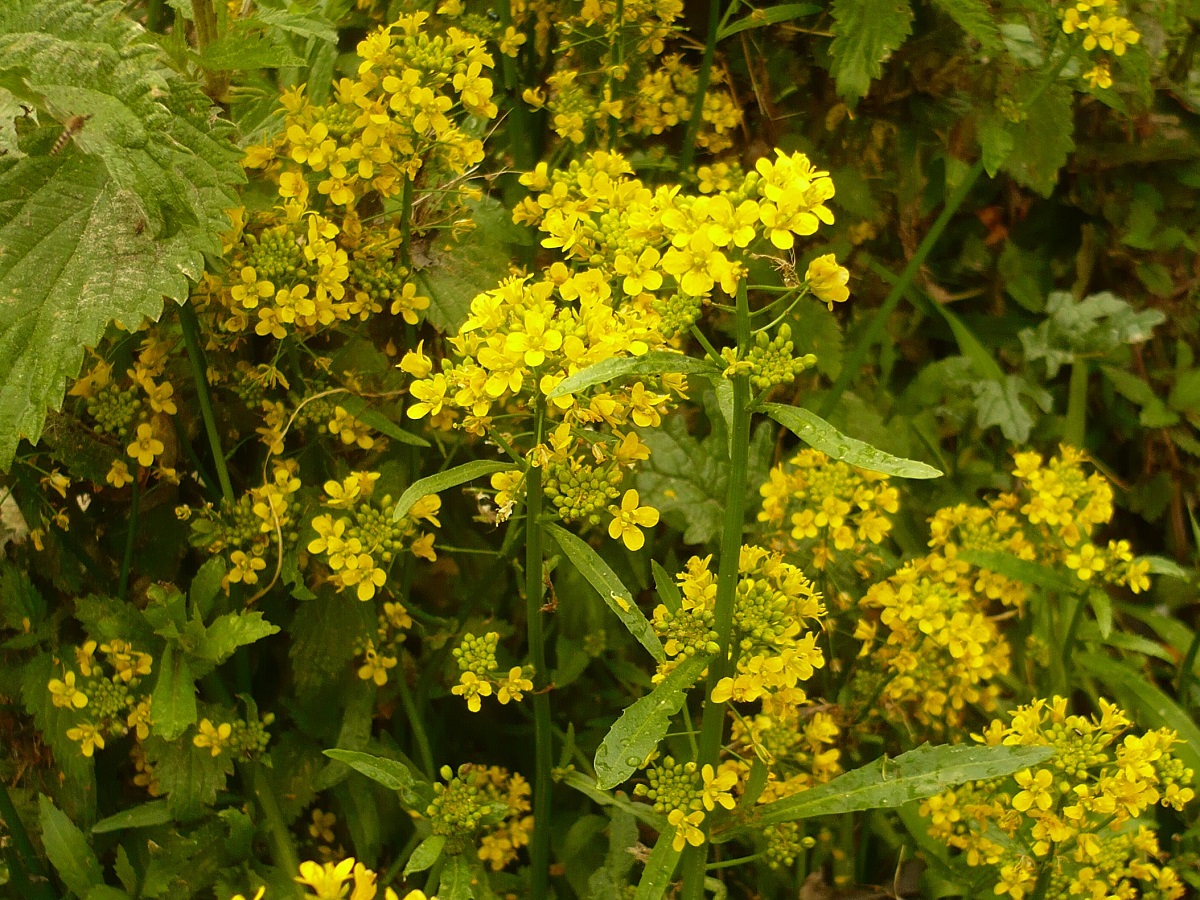 Hydr Hc – 4-12 dm – Robuste, feuilles < ± incisées en lobes aigus, les > lancéolées-dentées – Grappes de fleurs à 4 pétales jaunes – Silicule ovoïde apiculée, à pédoncule allongé, étalé