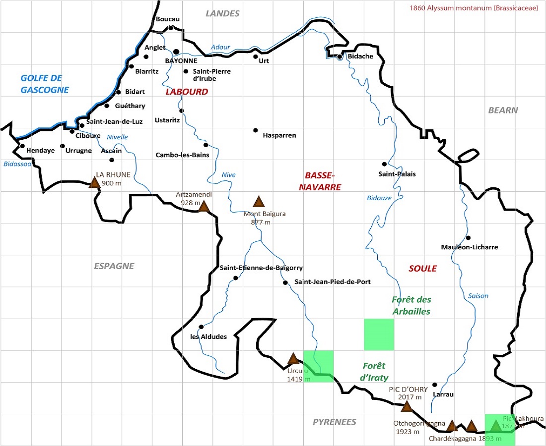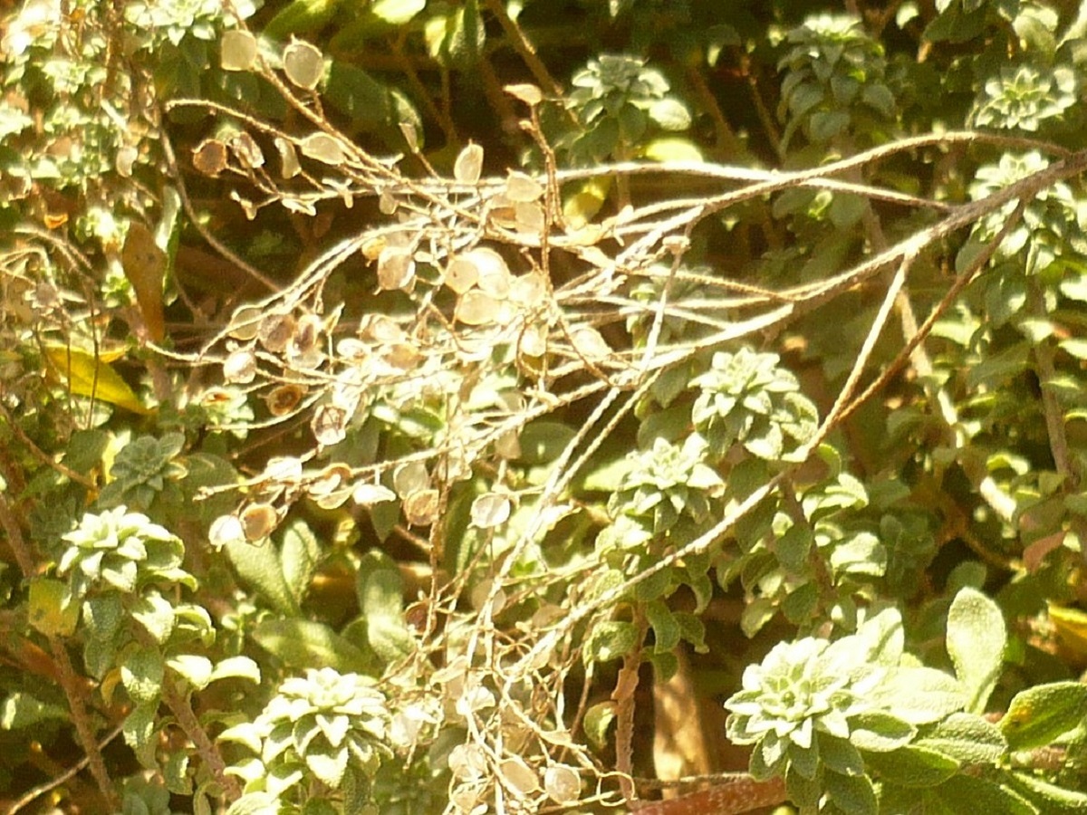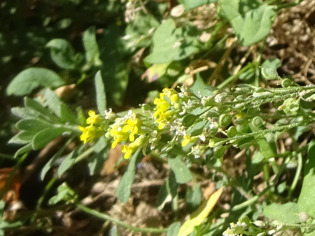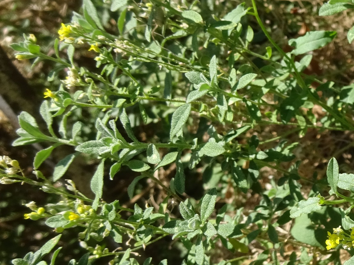 Ch – 1-3 dm – Tiges ± ligneuses, petites feuilles obovales gris blanchâtre – Grappe dense de fleurs à 4 pétales jaune vif de L ≃ 6 mm, émarginés – Silicules suborbiculaires à style long