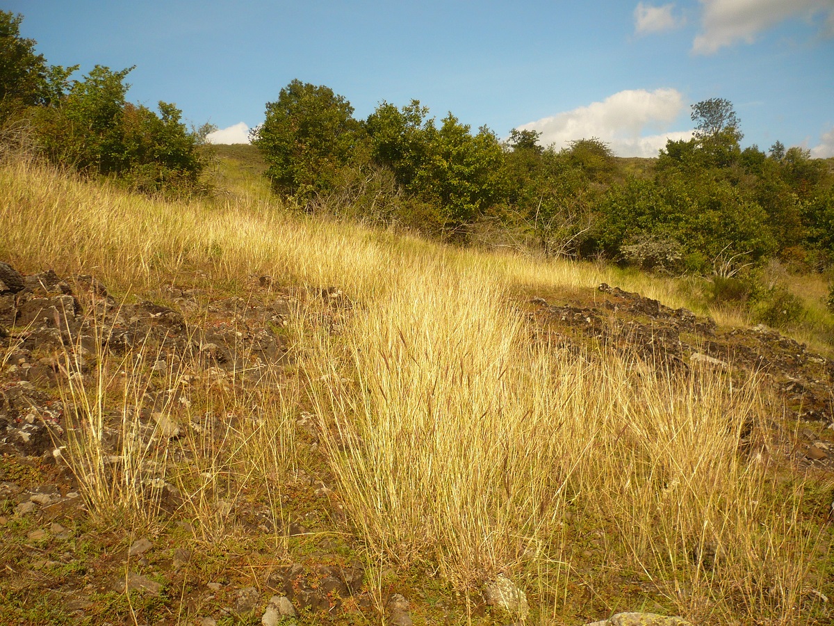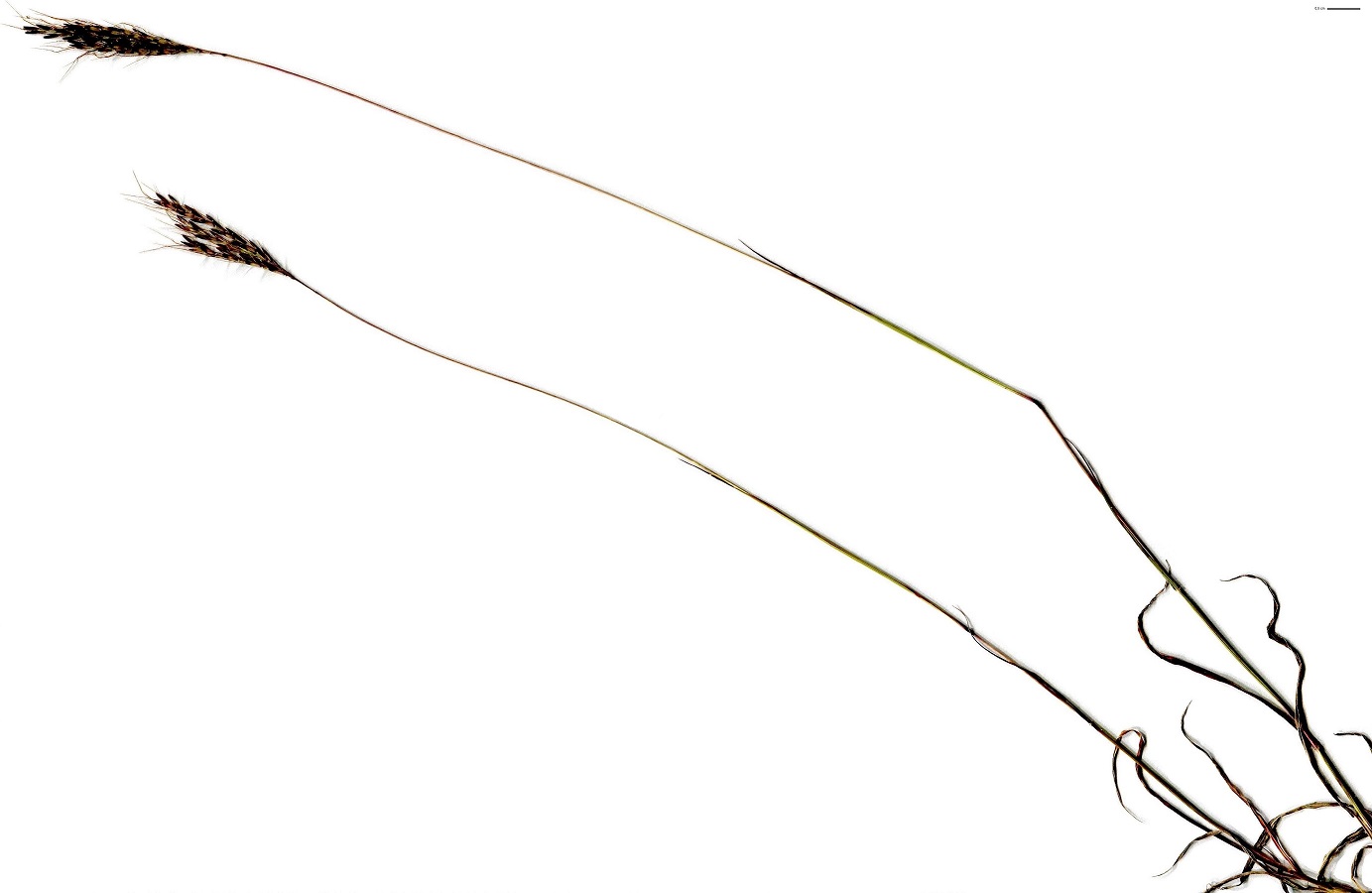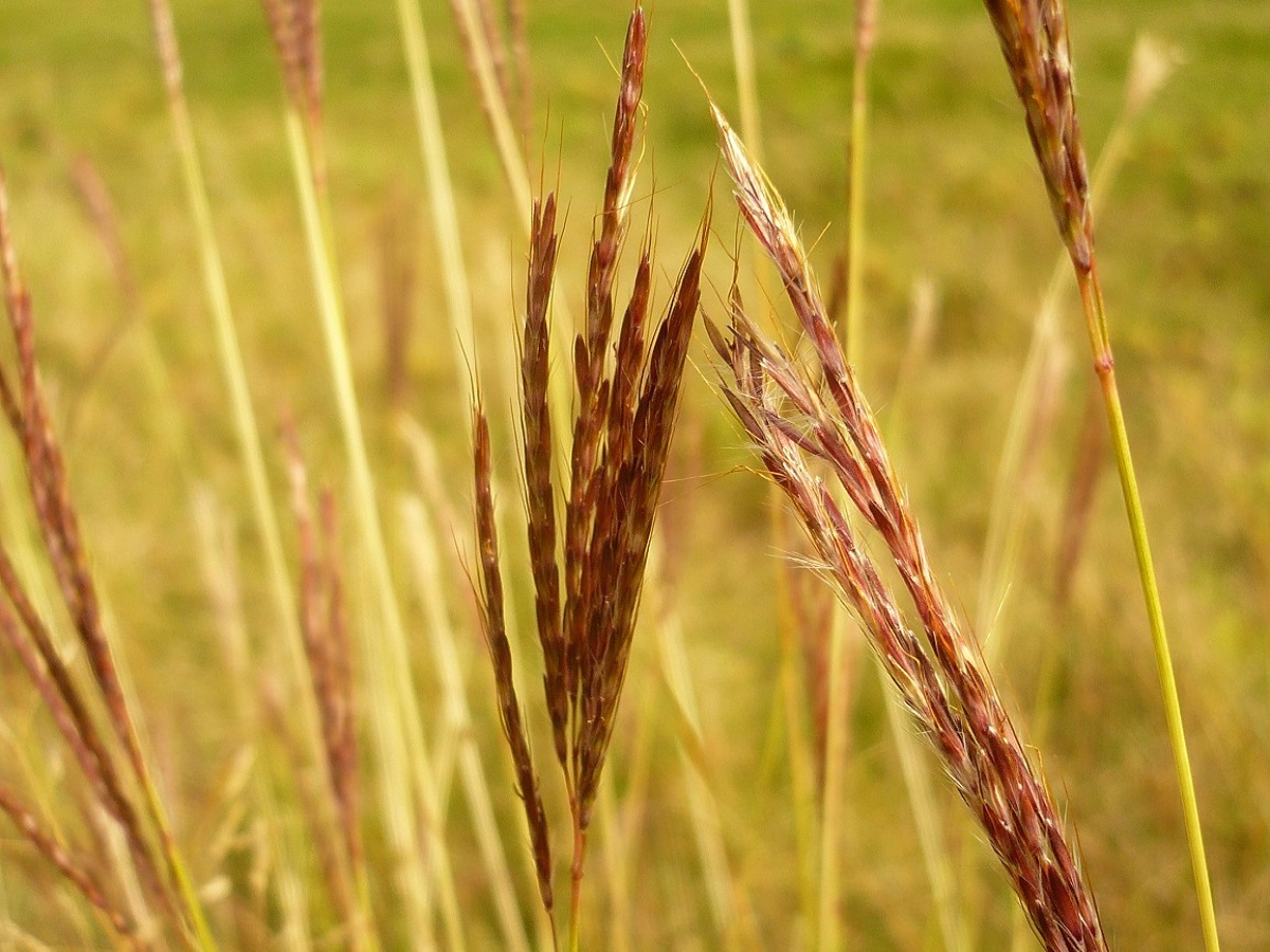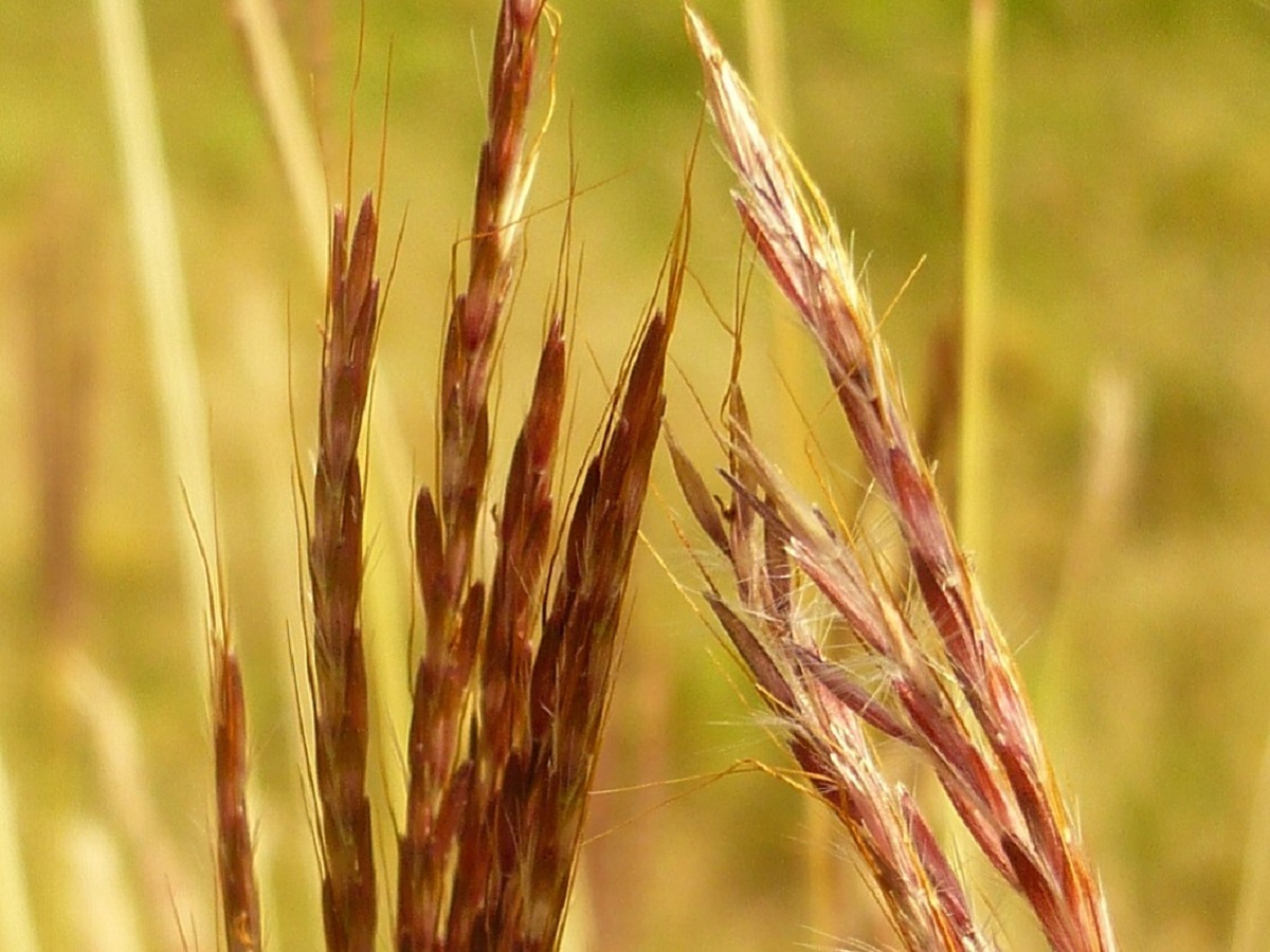 Hc – 4-8 dm – Feuilles longues et fines ± velues, ligule ciliée – Inflorescence violacée à 5-12 épis soyeux dressés à étalés, glumelle < à longue arête genouillée