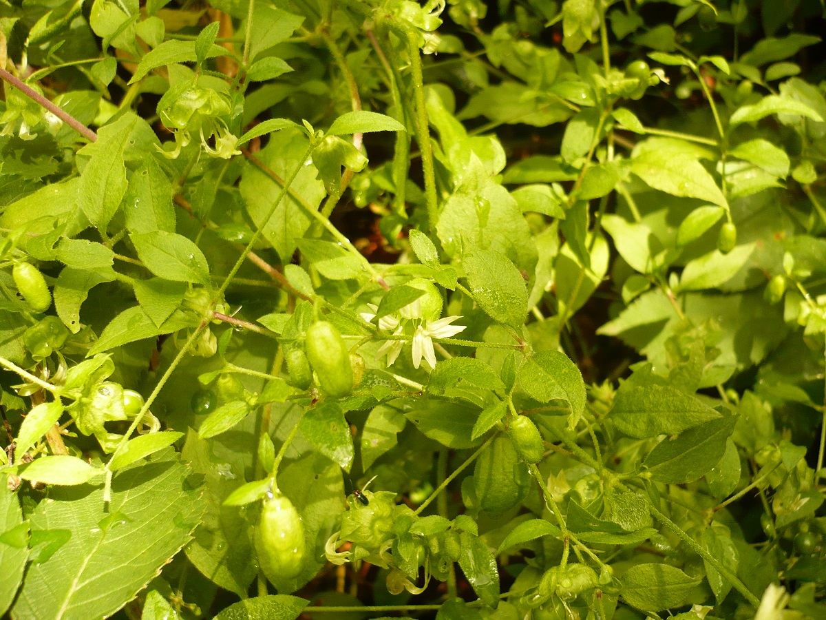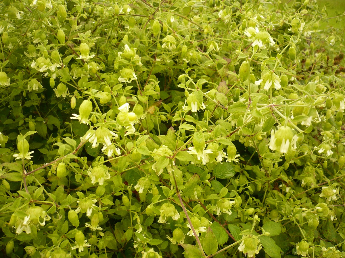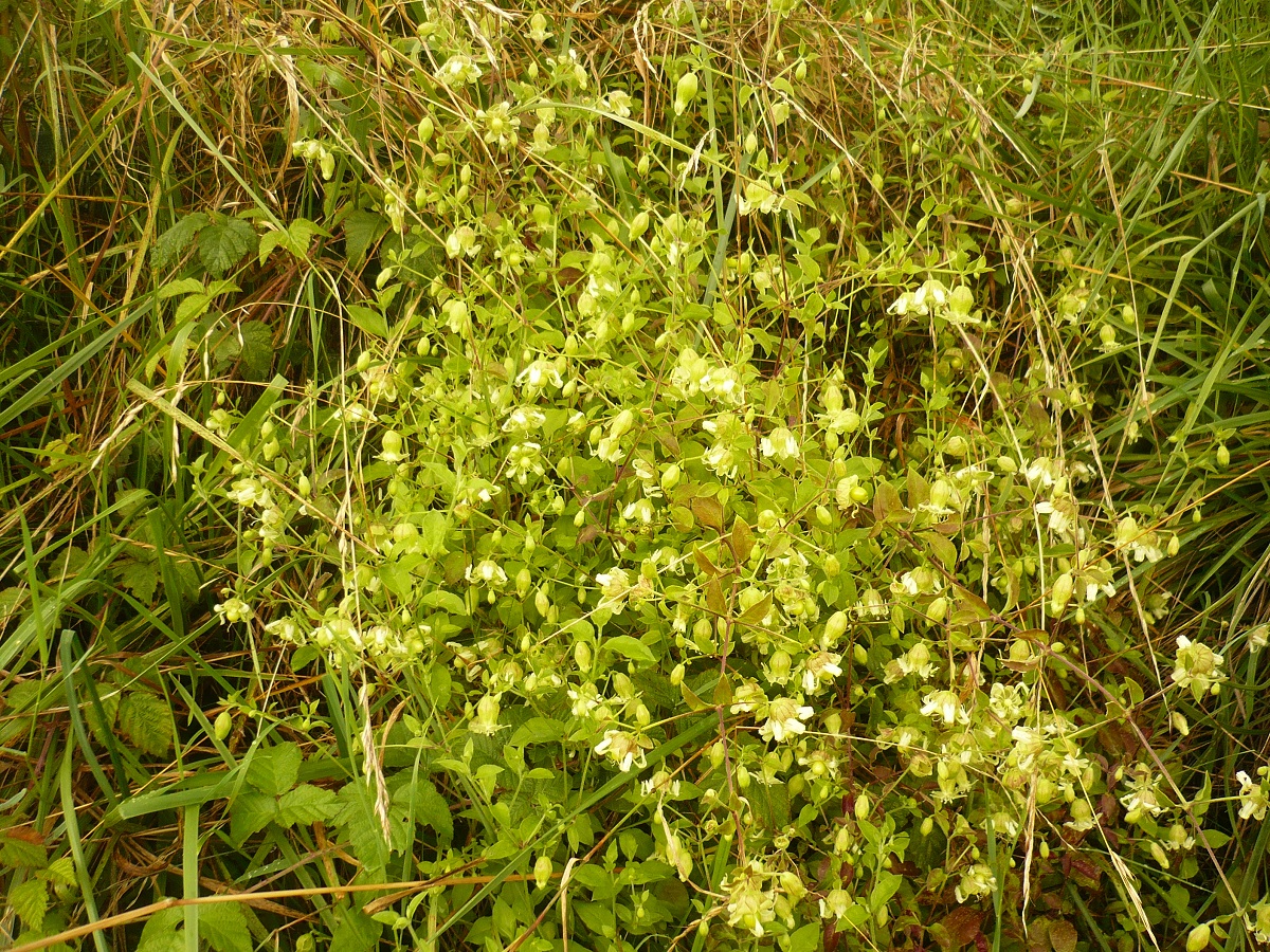 Hc – 5-15 dm – Très diffuse, feuilles opposées ovales-acuminées, molles – Fleurs à pétales blanc-verdâtre étroits, bilobés, à calice largement campanulé – Baie noire, luisante