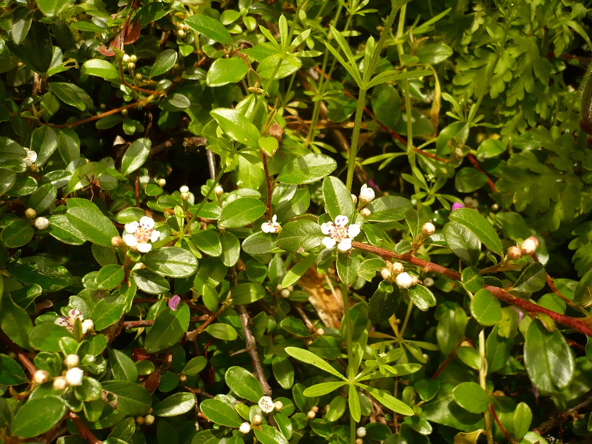 Ch/NPh – 5-20 dm – Rameaux longs rampants, feuilles L de 2-3 cm elliptiques luisantes, coriaces – Fleurs petites à corolle rotacée blanche – « Fruit » de Ø 6-7 mm globuleux rouge vif
