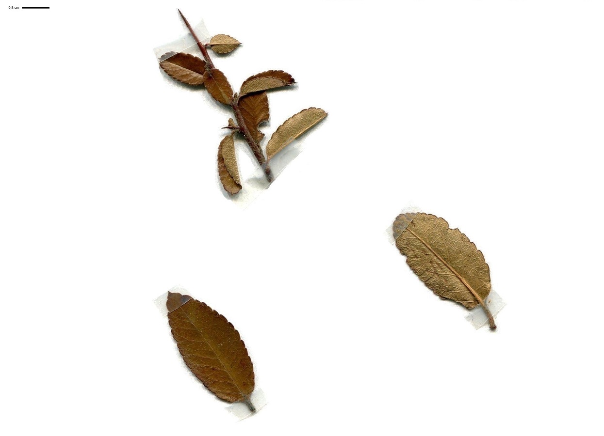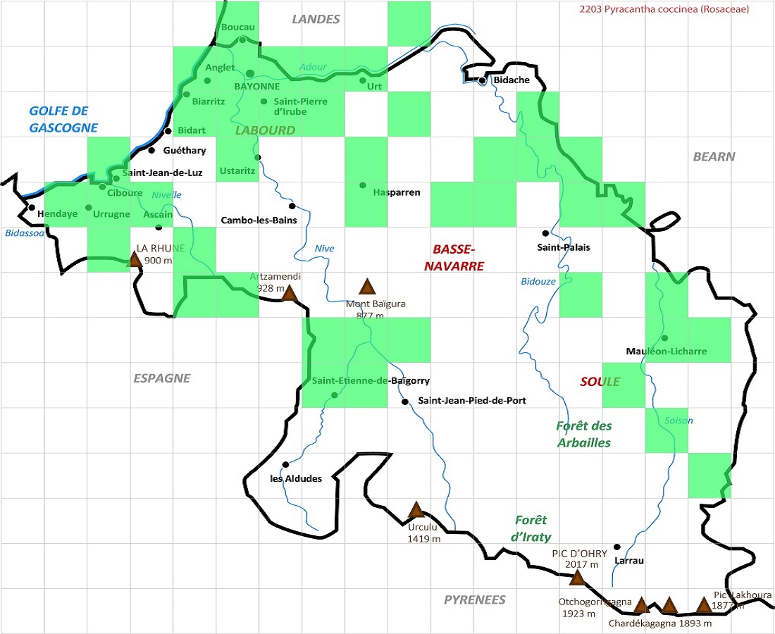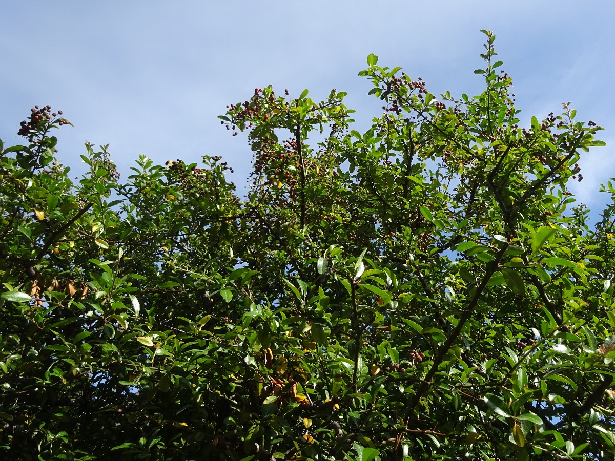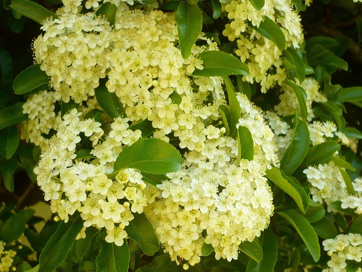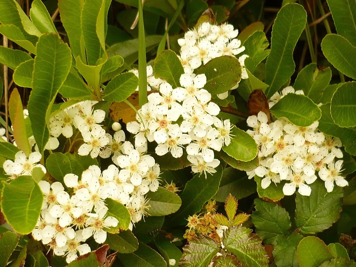 NPh – 1-2 m – Rameaux à fortes épines, feuilles de L ≃ 3 cm ovales, crénelées, persistantes – Corymbes fournis de fleurs blanches – « Fruits » de Ø 5-7 mm globuleux, rouge écarlate