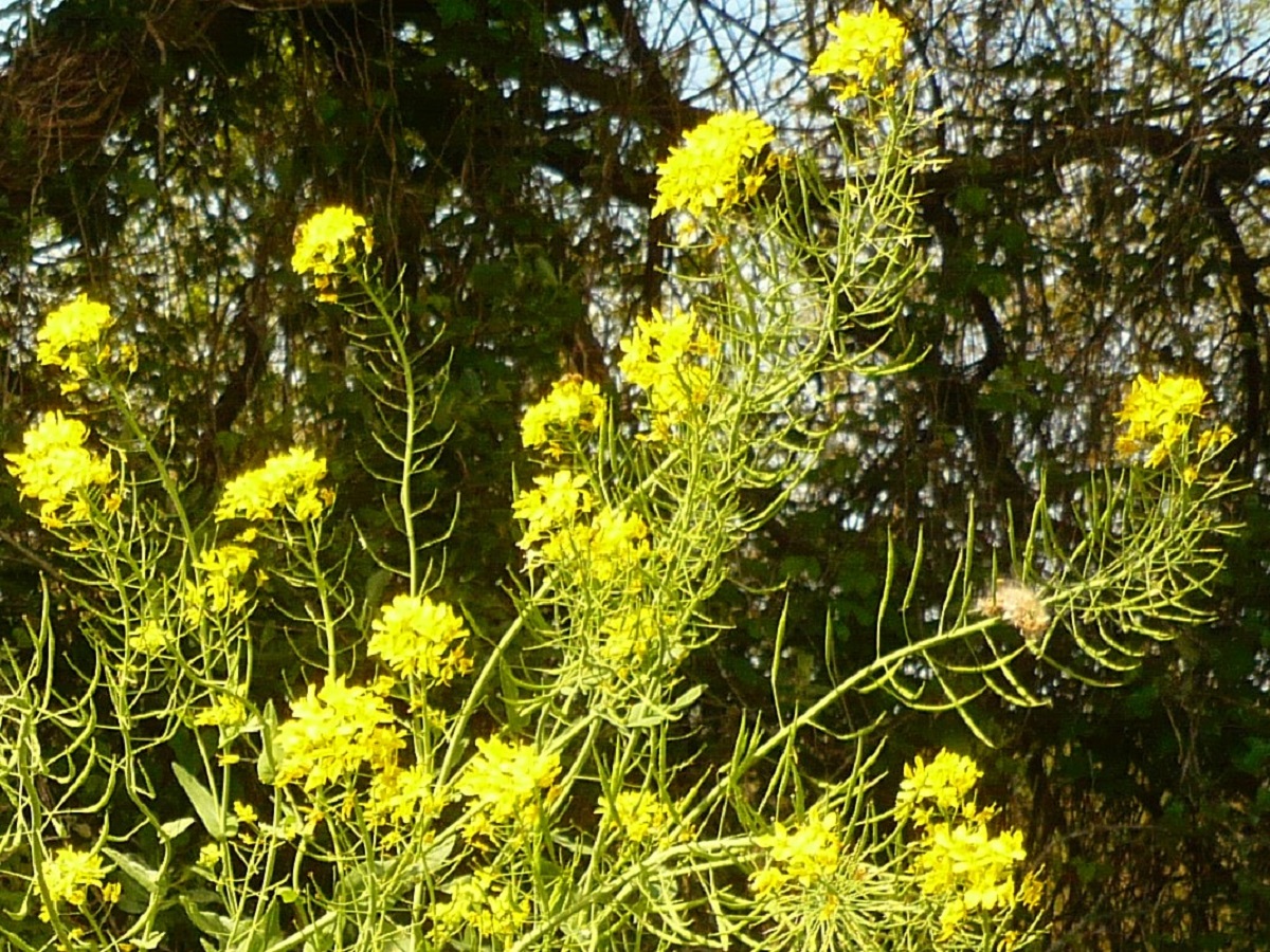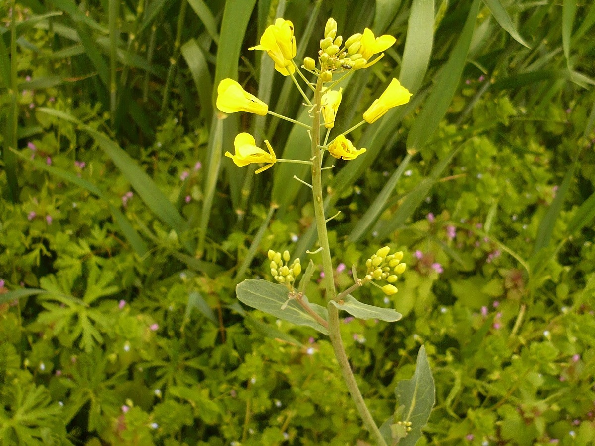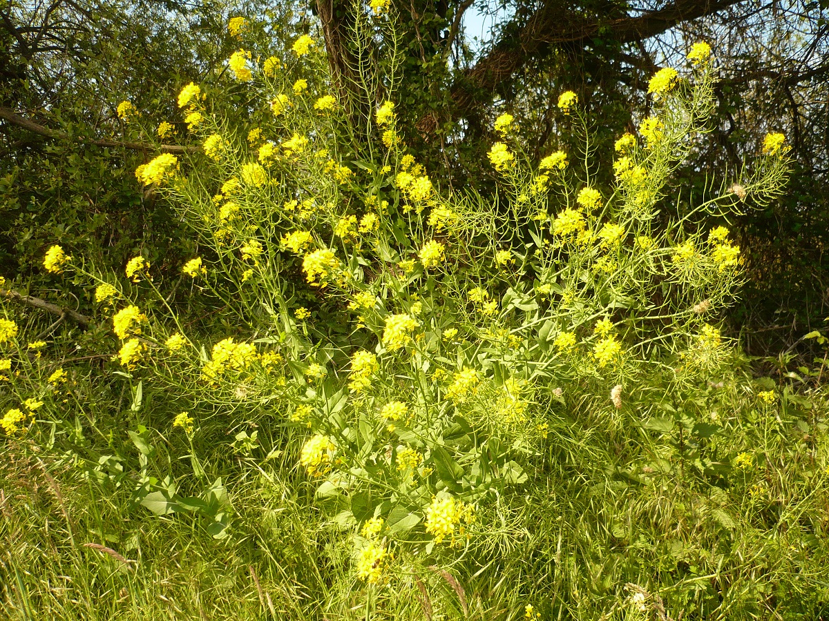Th/Hc – 5-10 dm – Glauque, feuilles larges dentées, les > amplexicaules – Grappe lâche de grandes fleurs à 4 pétales jaunes, sépales dressés-étalés – Siliques ± étalées, bec long
