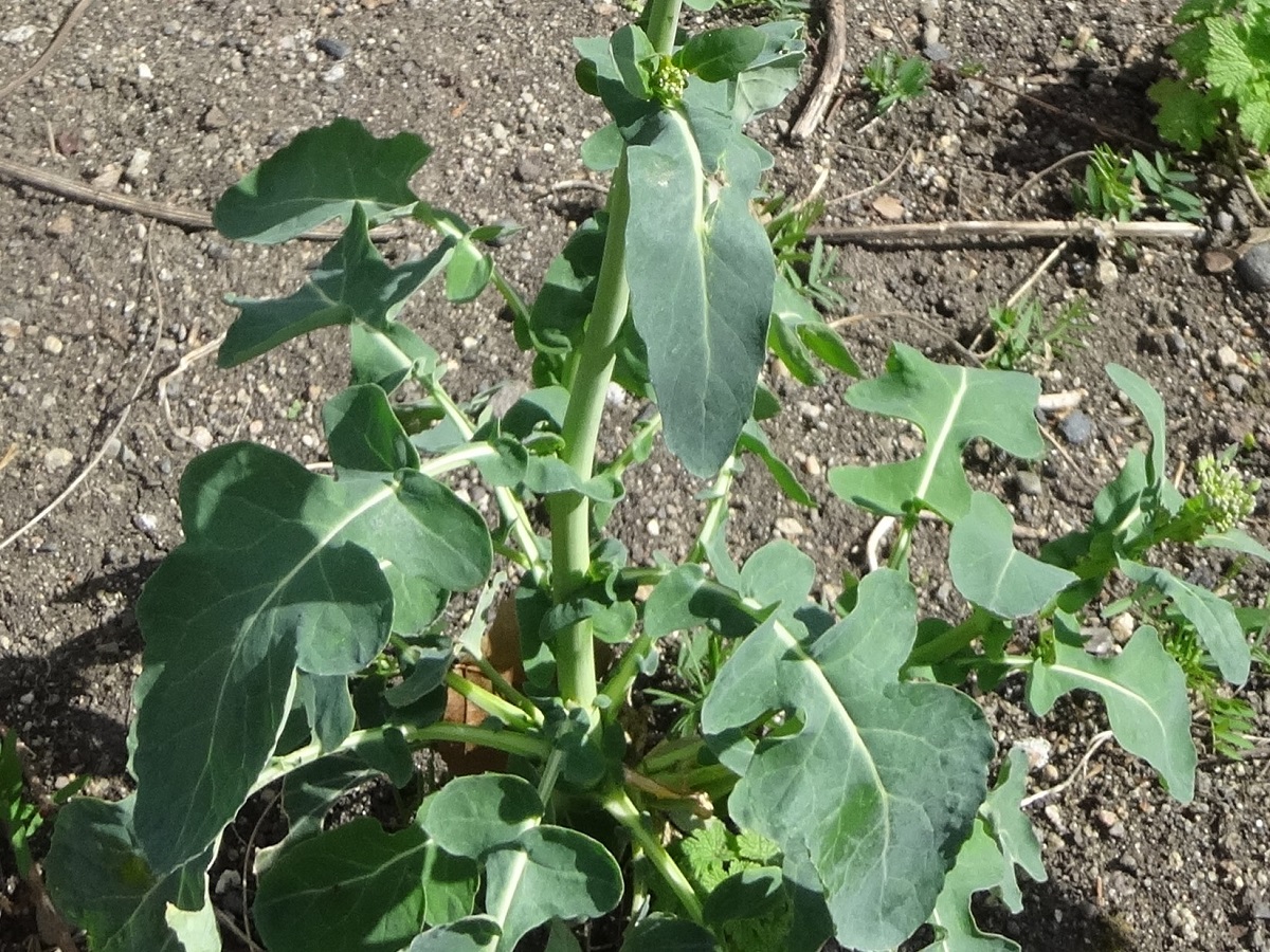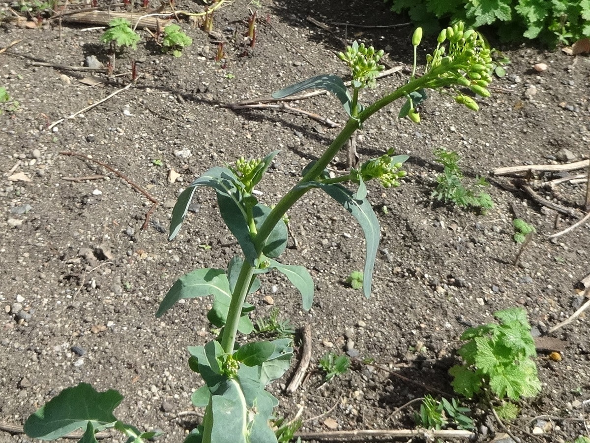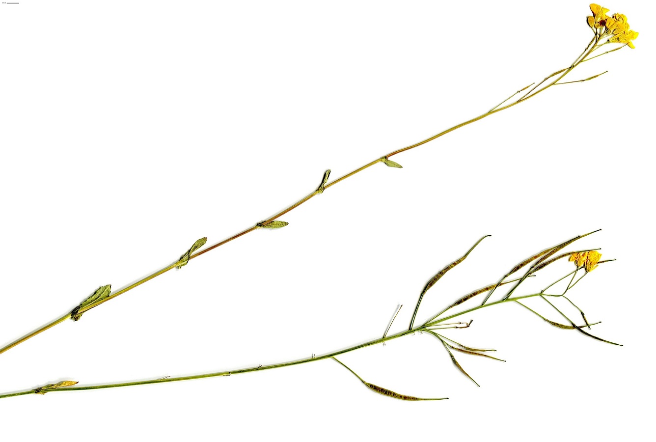 Th/Hc – 5-10 dm – Glauque, feuilles larges dentées, les > amplexicaules – Grappe lâche de grandes fleurs à 4 pétales jaunes, sépales dressés-étalés – Siliques ± étalées, bec long