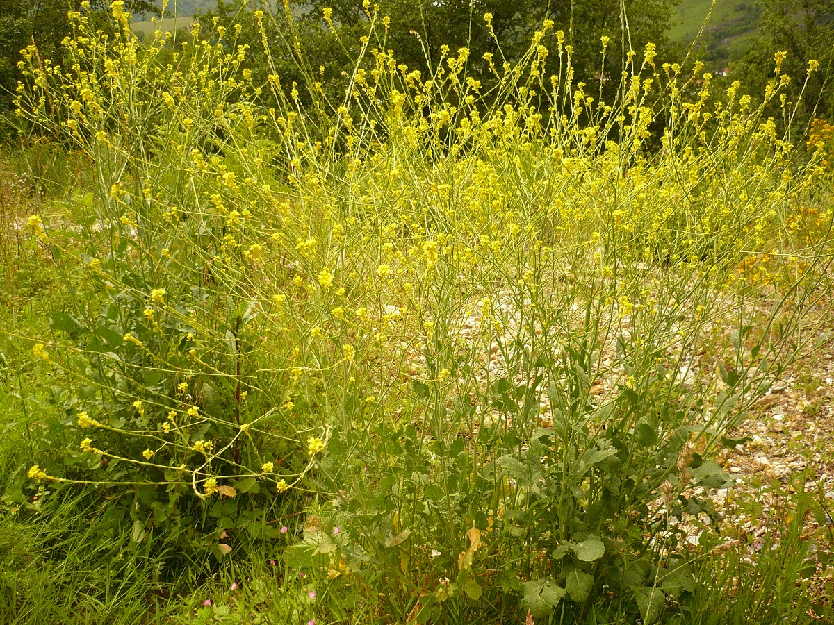 Th – 5-20 dm – Feuilles < ± entières, les > divisées à grand lobe terminal – Grappes denses, fleurs à 4 pétales jaunes, pédicelle court – Siliques courtes ± appliquées, à bec court