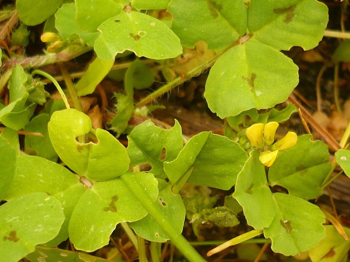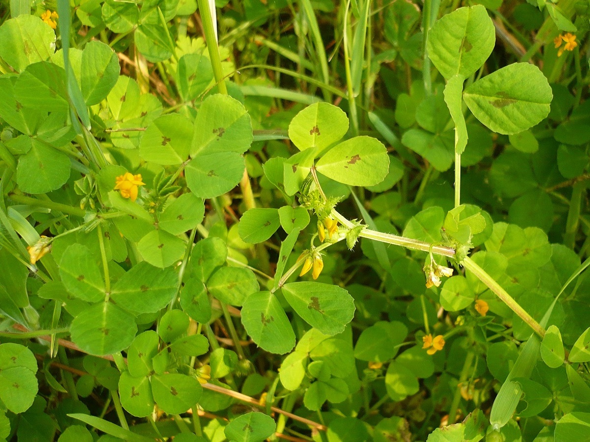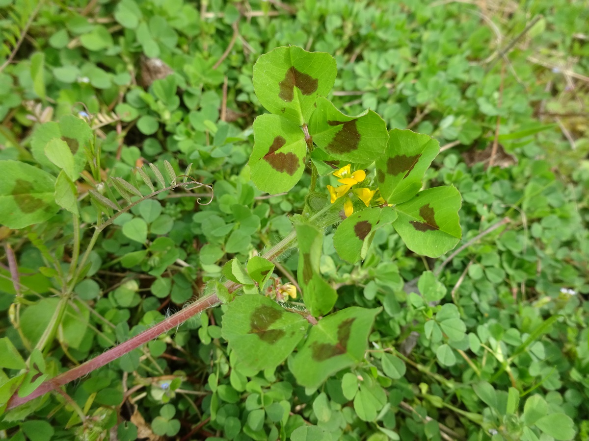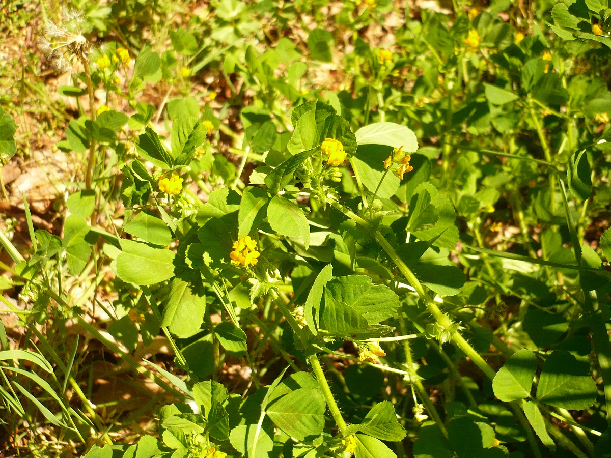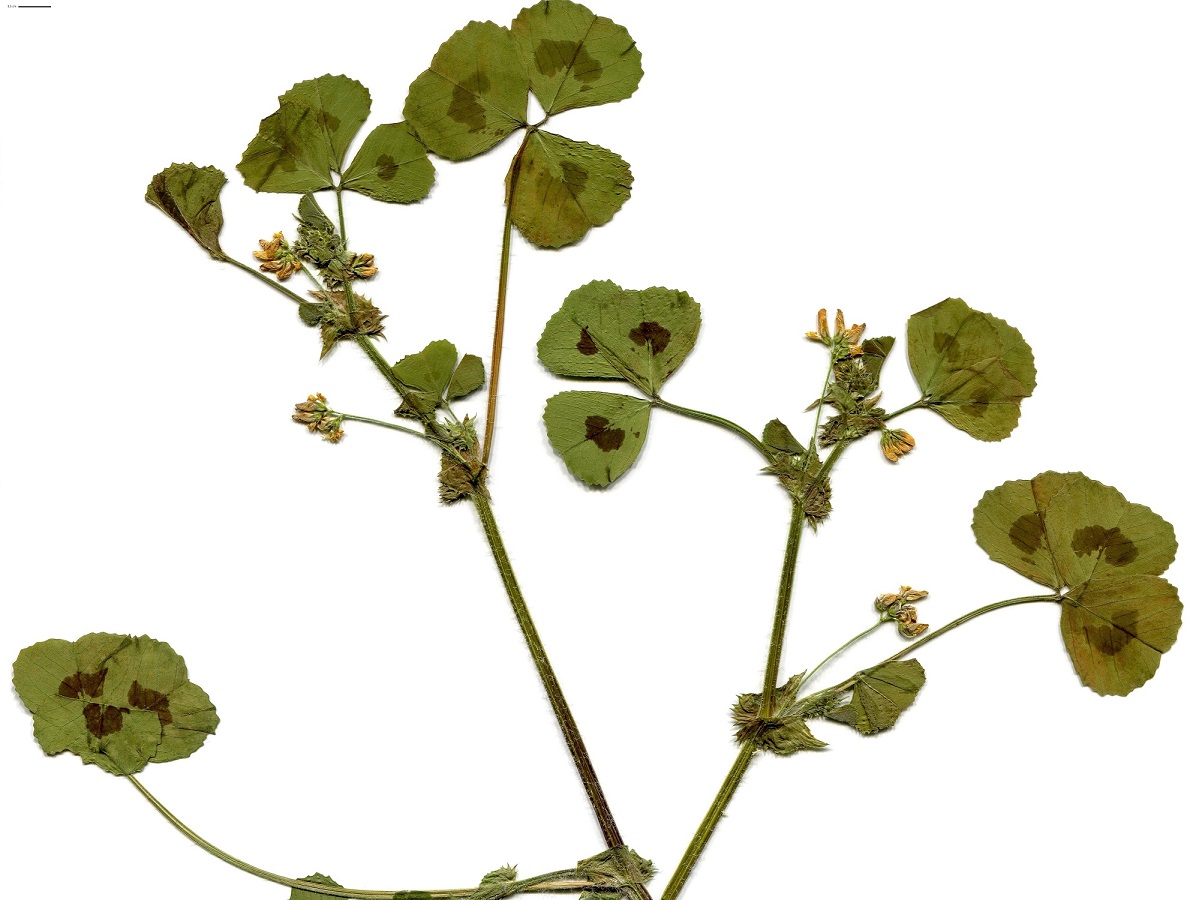Th – 2-6 dm – Feuilles à 3 folioles larges échancrées, ± à macule centrale – 1-4 Fleurs en grappe, à corolle jaune L de 5-7 mm – Gousse de Ø 5-6 mm ellipsoïde spiralée, à épines arquées