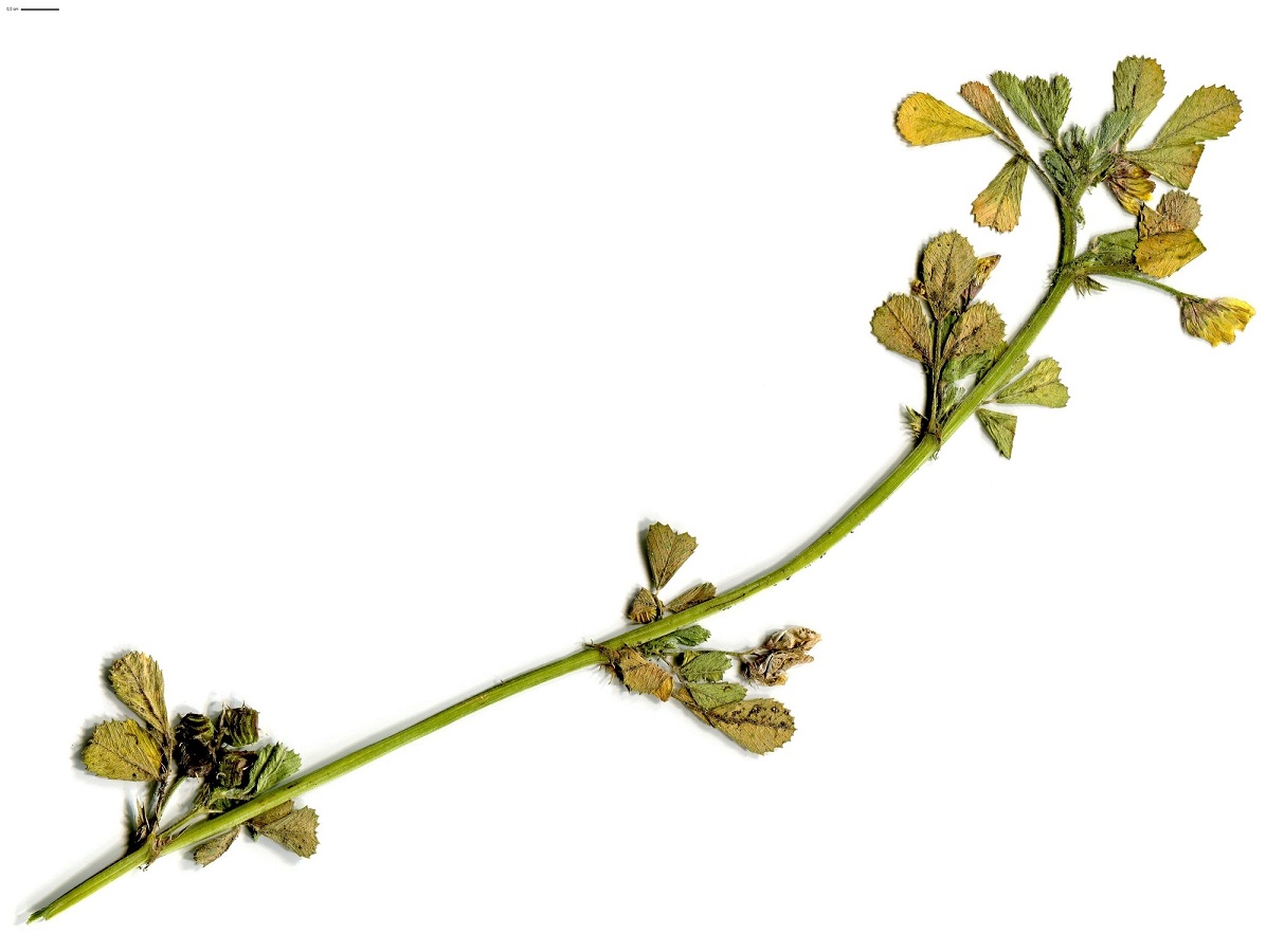 Th – 1-4 dm – Étalée, feuilles à 3 folioles obovales – 2-4 Fleurs jaunes L de 4-6 mm en grappe, calice velu, stipules laciniées – Gousse de Ø 4-5 mm cylindrique spiralée, épineuse, glabre