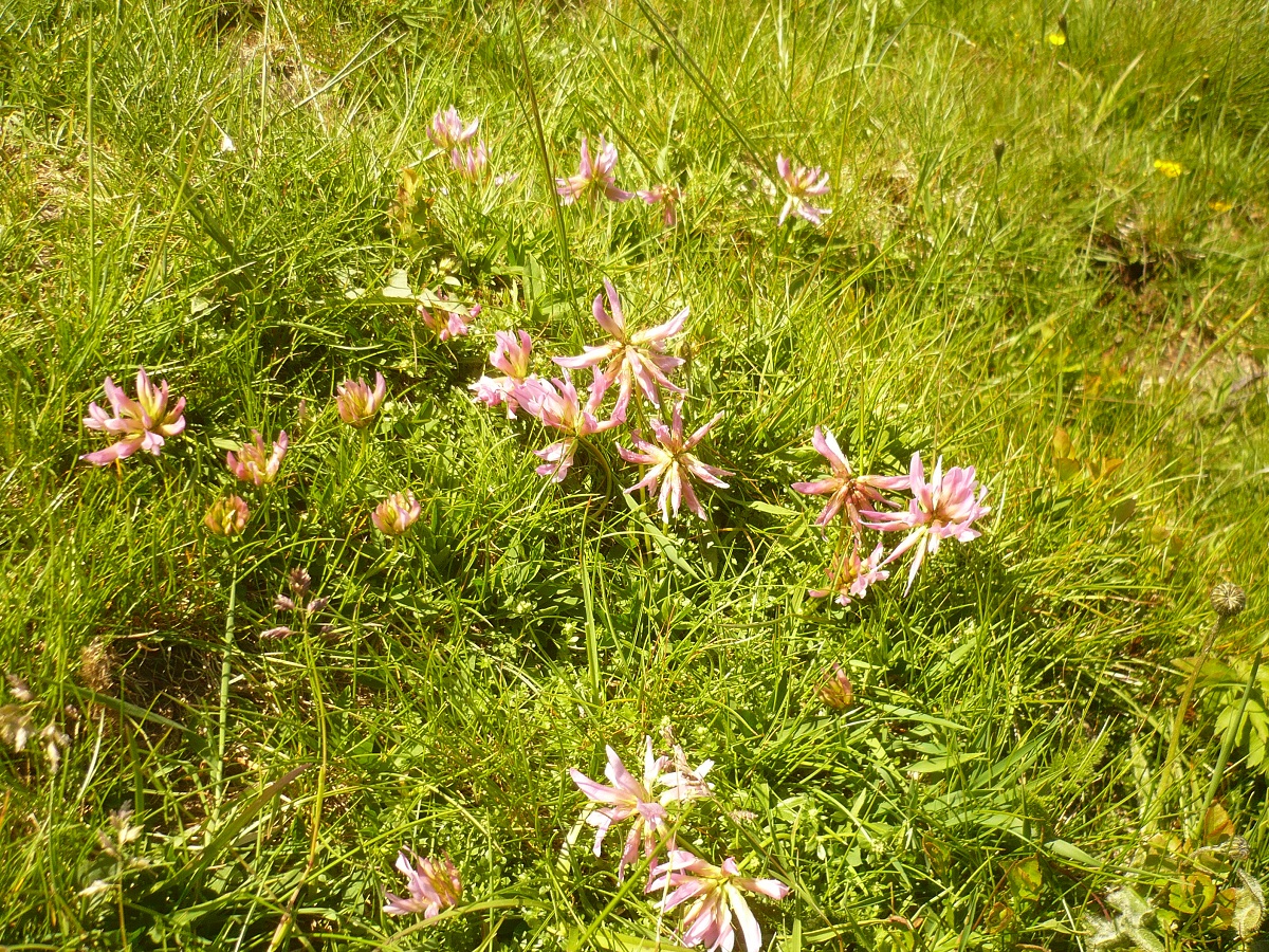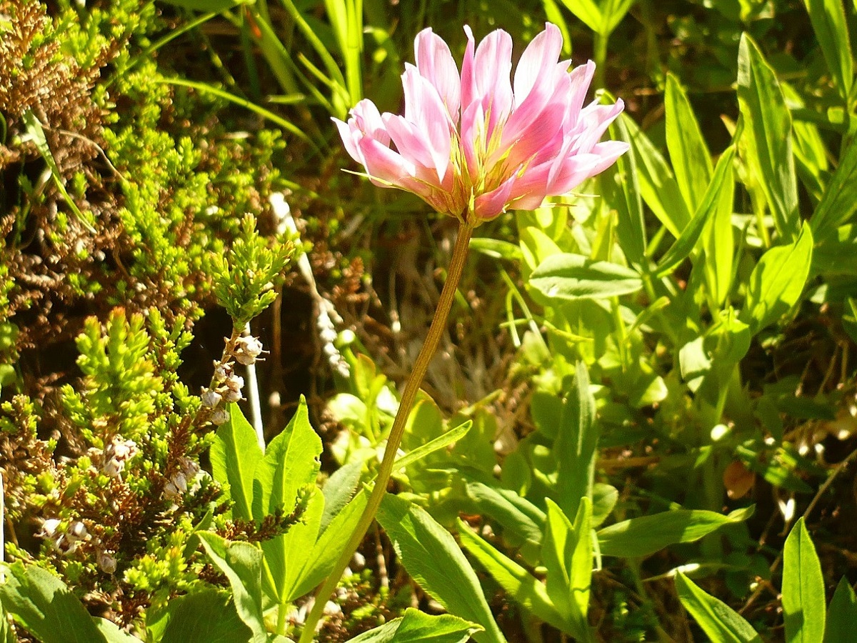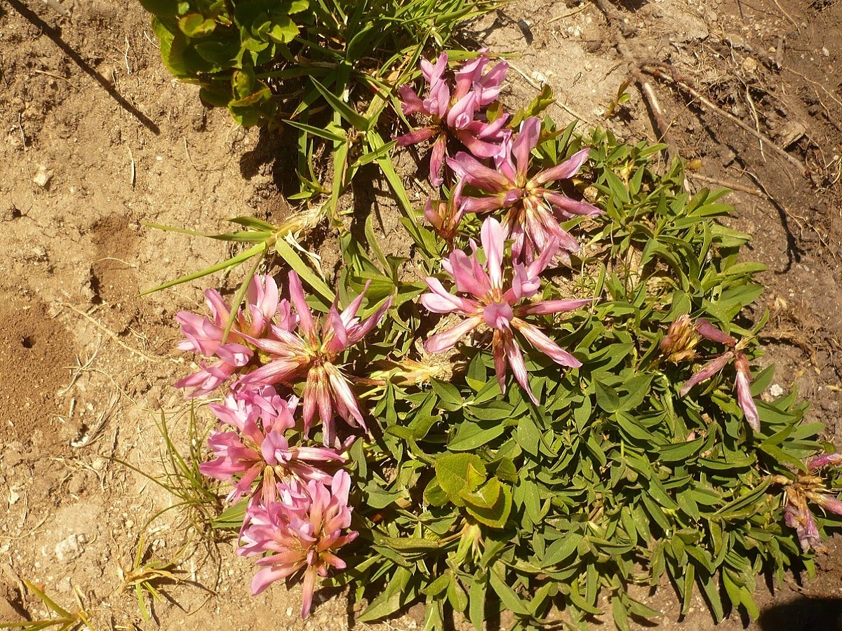 Hc – 0,5-2 dm – Feuilles pétiolées, à 3 folioles L de 1-4 cm lancéolées, stipules longues soudées – Grandes fleurs à corolle L de 18-25 mm rose, ± défléchies, longuement pédonculées