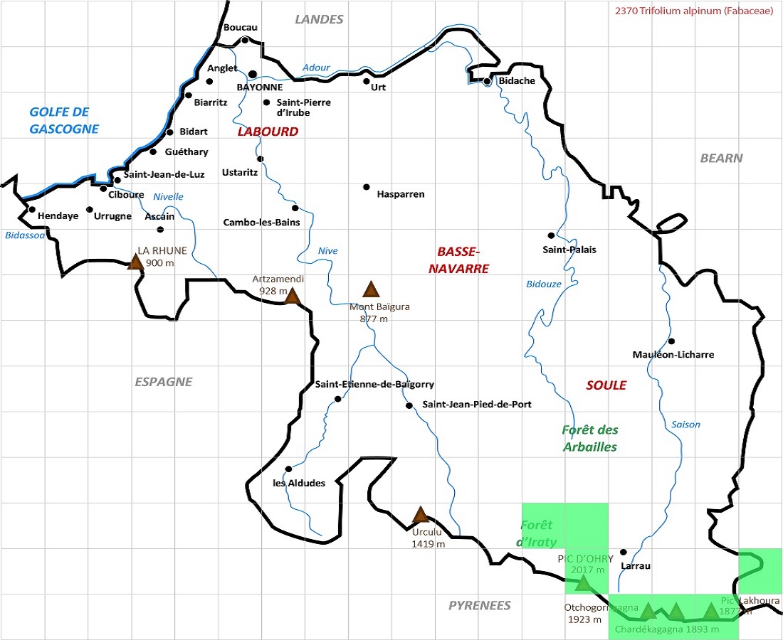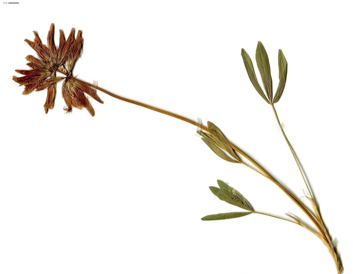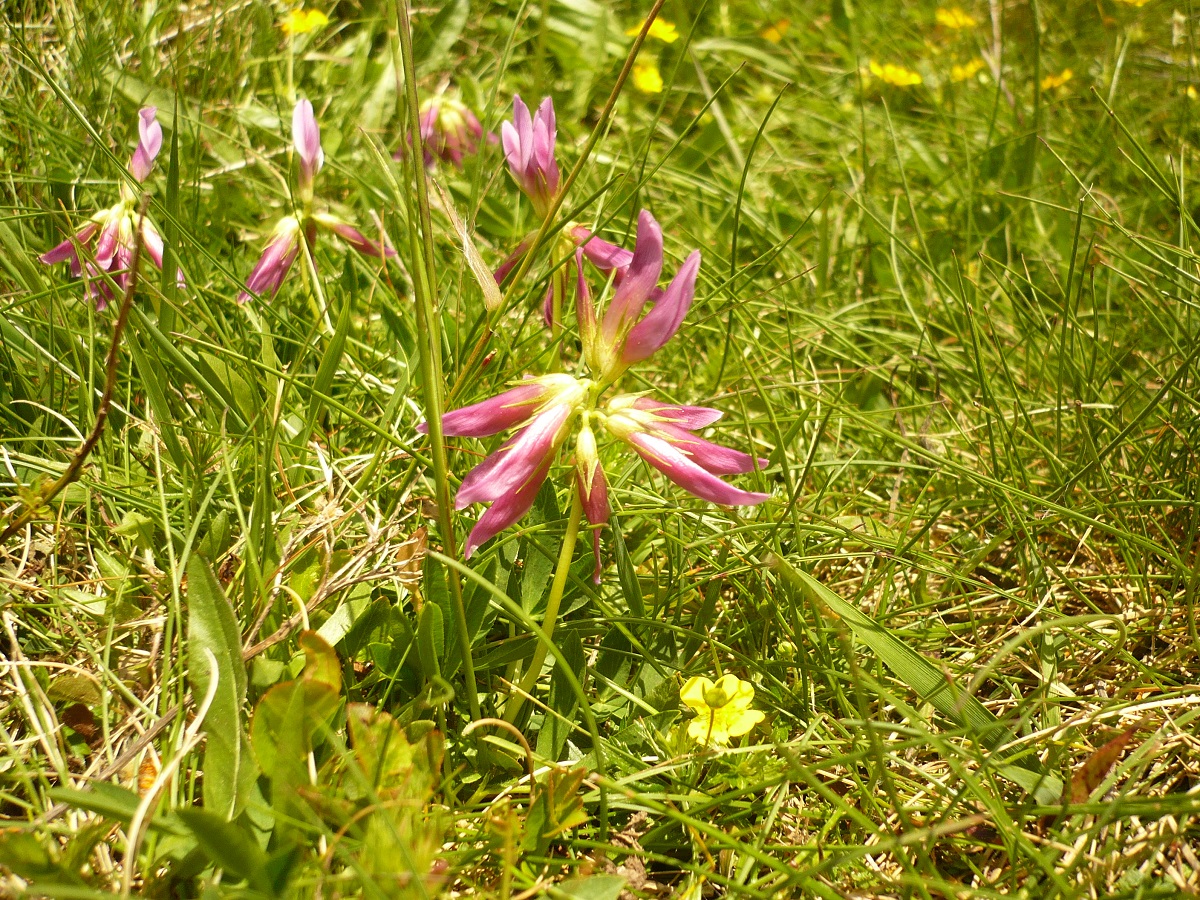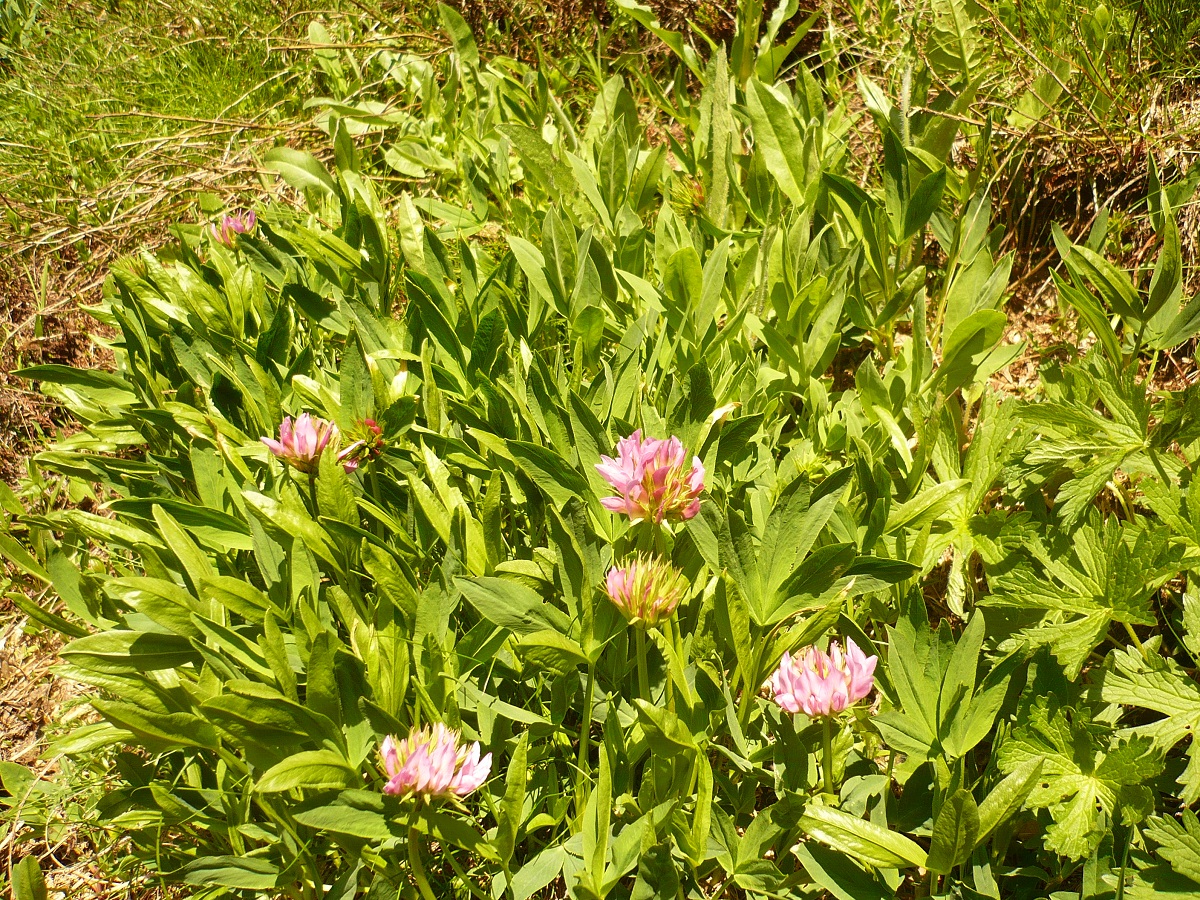 Hc – 0,5-2 dm – Feuilles pétiolées, à 3 folioles L de 1-4 cm lancéolées, stipules longues soudées – Grandes fleurs à corolle L de 18-25 mm rose, ± défléchies, longuement pédonculées