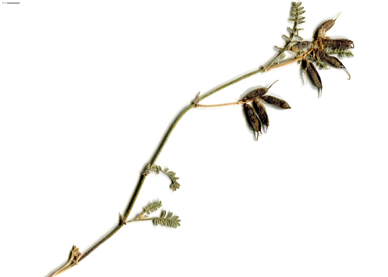 Hc – 1-3 dm – Feuilles velues grisâtres imparipennées à 11-21 folioles petites de L < 5 mm ovales – 3-8 Fleurs L de 1-1,5 cm bleu violacé ± pâle – Gousse courte assez épaisse ≃ 1 x 0,4 cm