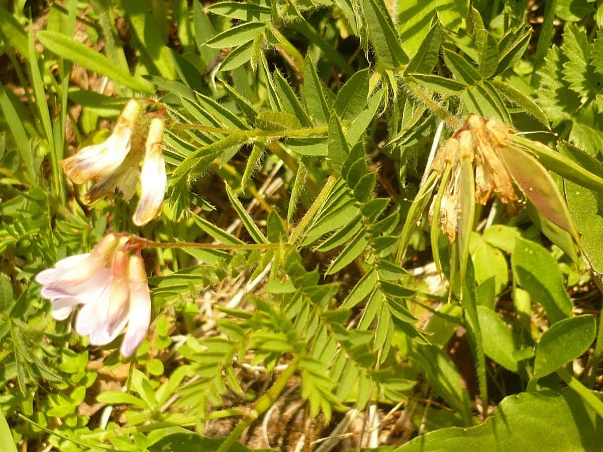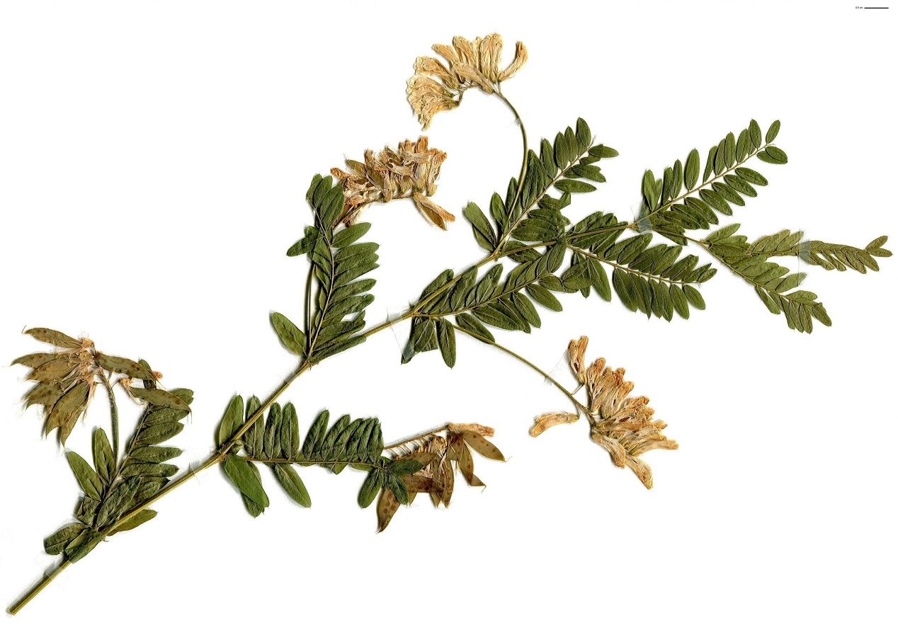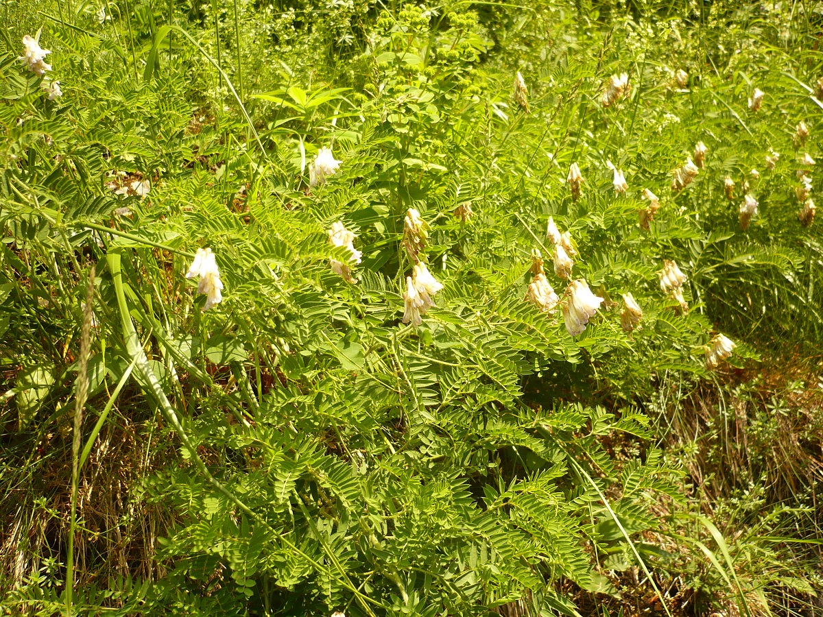 Hc – 3-6 dm – Feuilles pennées à 16-30 folioles L de 1-2 cm oblongues mucronées, sans vrille – Grappe de 5-20 fleurs à corolle L de 12-15 mm blanche et pourprée – Gousse L de 2-3 cm