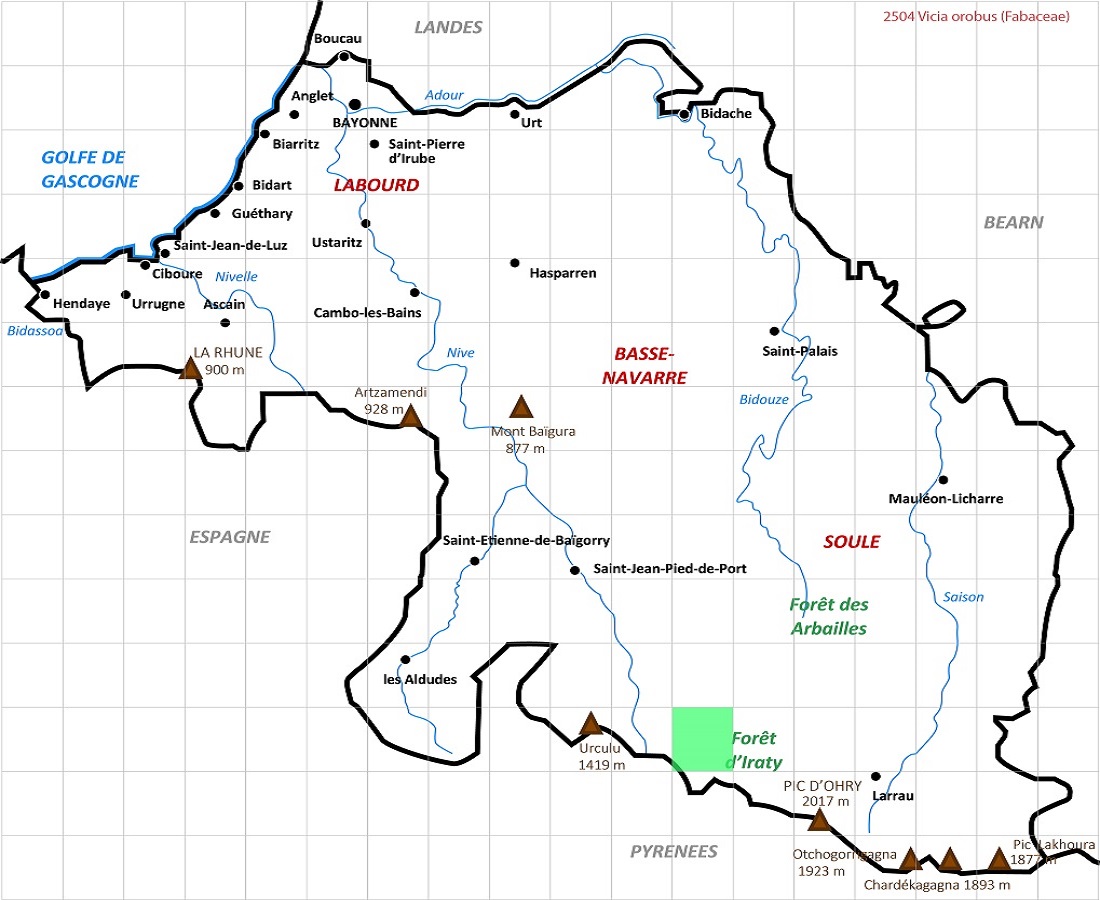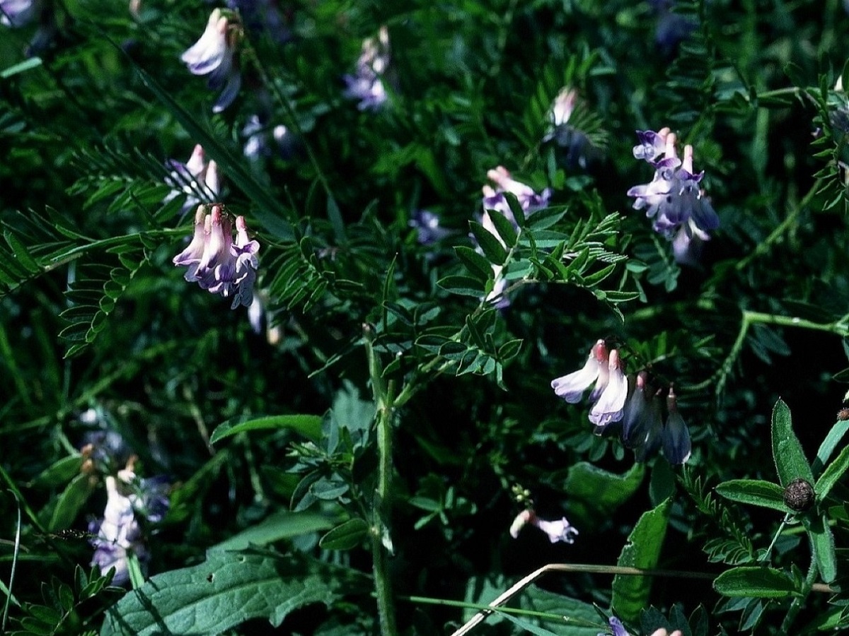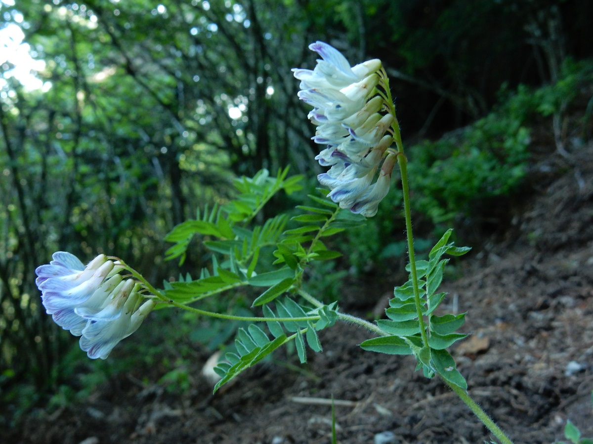 Hc – 3-6 dm – Feuilles pennées à 16-30 folioles L de 1-2 cm oblongues mucronées, sans vrille – Grappe de 5-20 fleurs à corolle L de 12-15 mm blanche et pourprée – Gousse L de 2-3 cm