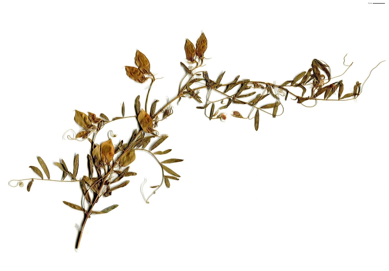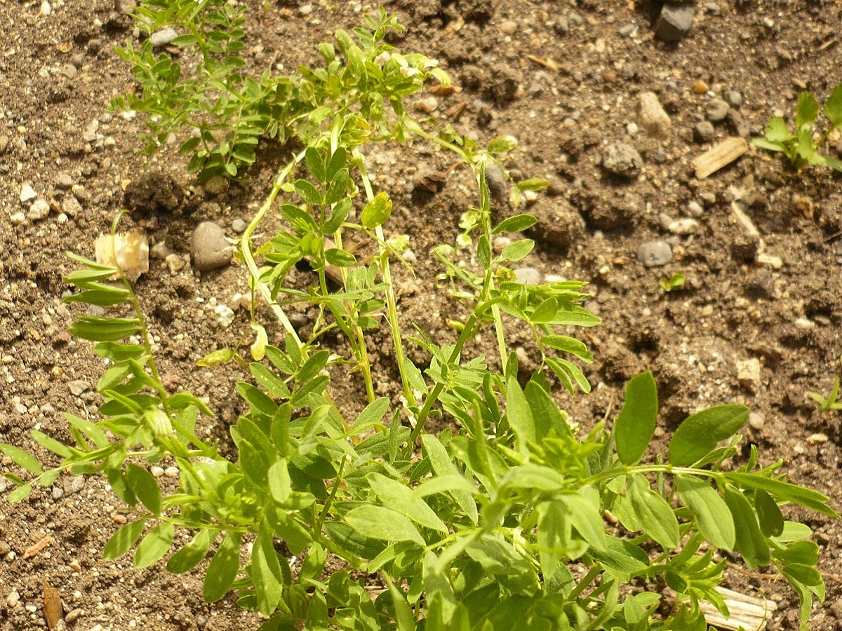Th – 2-4 dm – Feuilles pennées à 10-14 folioles L de 1-2 cm oblongues avec vrille, stipules entières – Fleurs par 1-3 petites L de 4-7 mm lilacées – Gousse ovale de L ≃ 1,5 cm, 1-3 graines