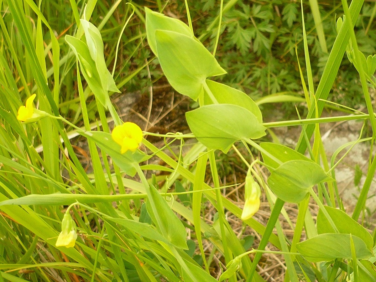 Th – 2-4 dm – Plante glauque, feuilles réduites à 1 vrille, à grandes stipules opposées larges ovales hastées – Fleurs par 1-2 à corolle L de 6-18 mm jaune – Gousse L de 2-3,5 cm glabre