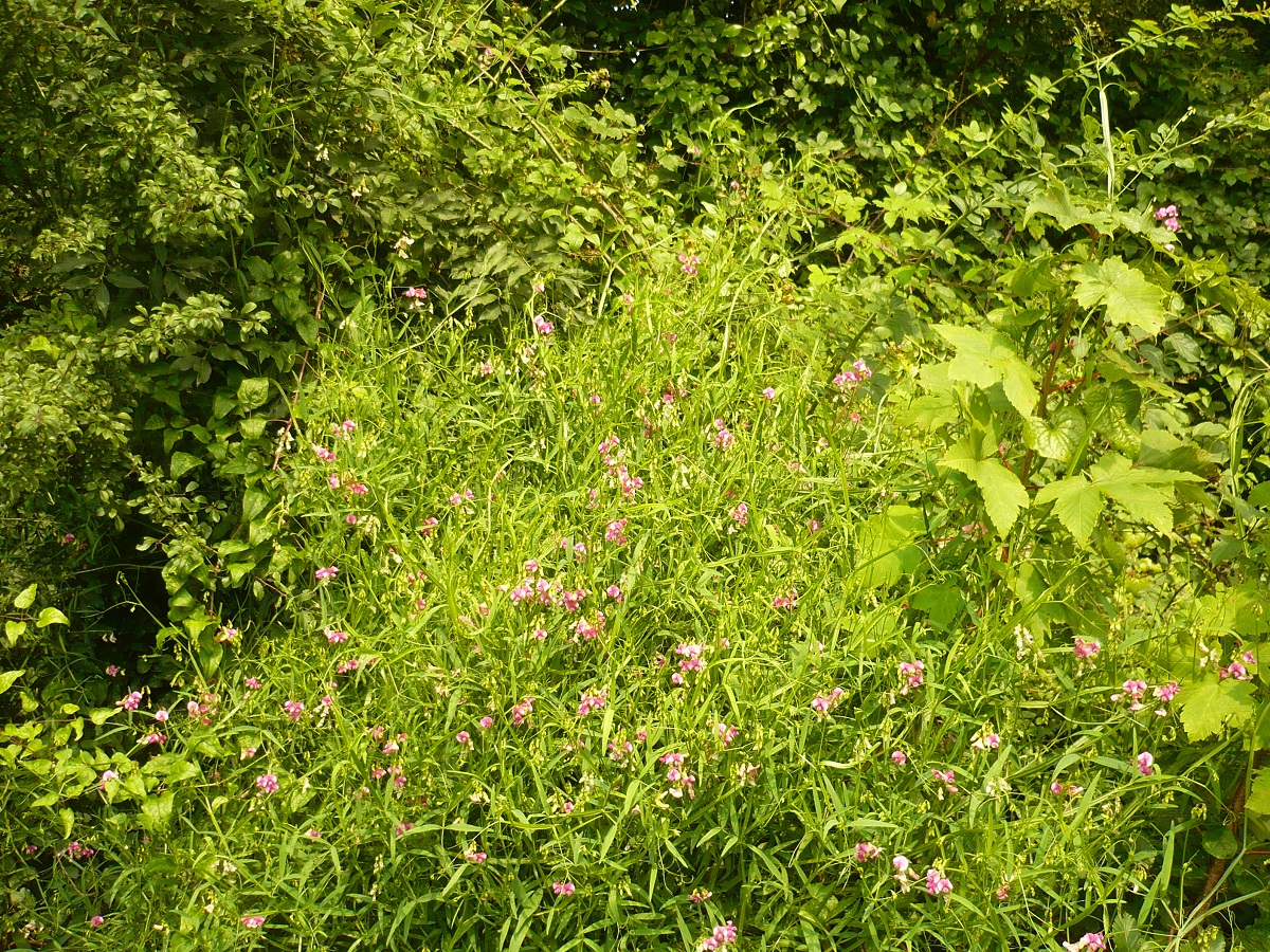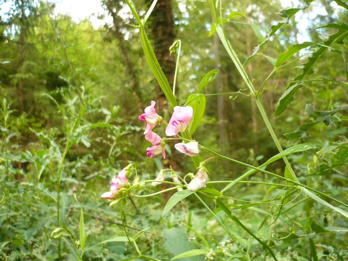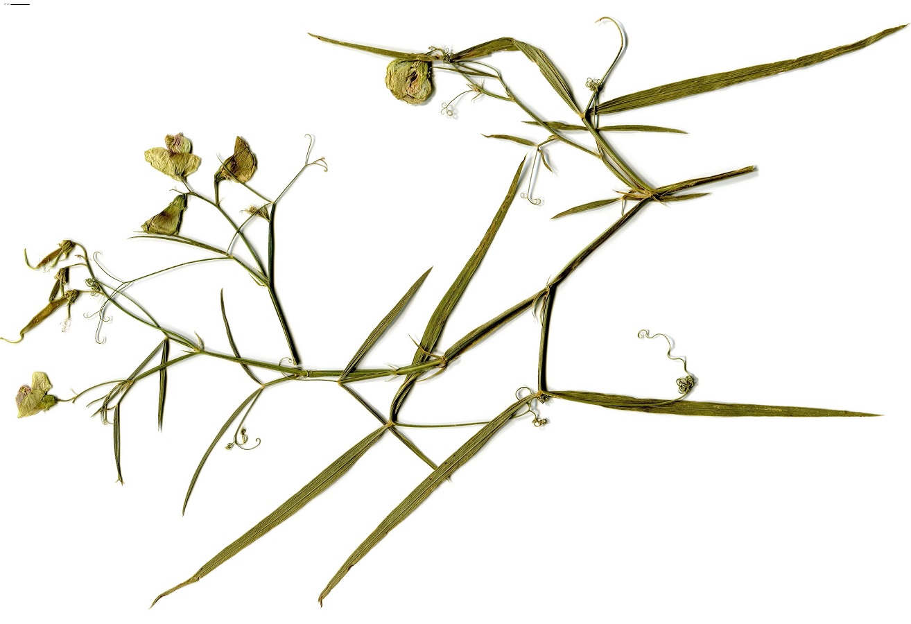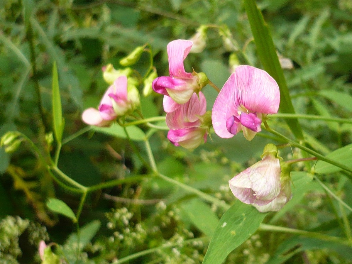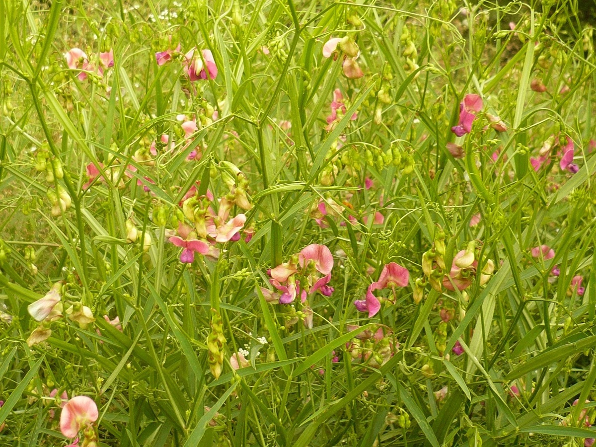 G à drageons – 5-20 dm – Tige ailée, feuilles à 2 folioles L de 5-15 cm linéaires, avec vrille – Grappe de 3-12 fleurs, corolle de L 1,5-2 cm rose ± mêlé de vert – Gousse L de 4-7 cm glabre