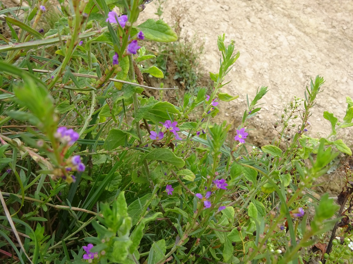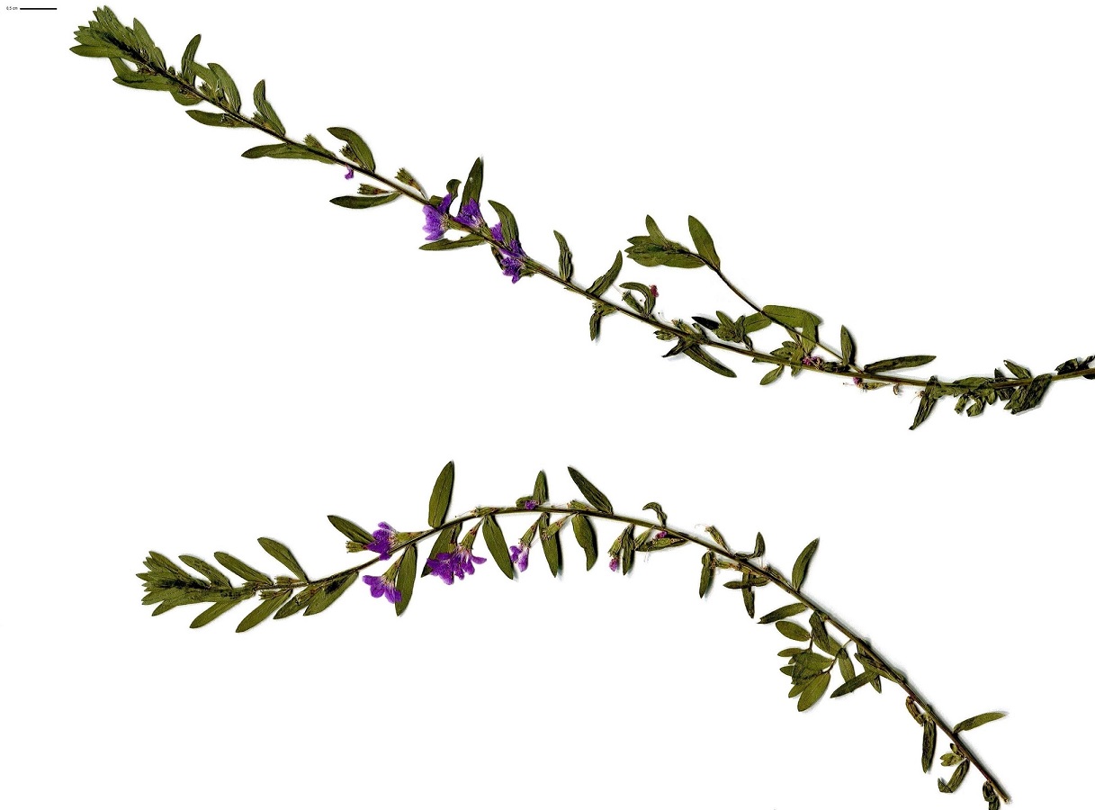Hc – 3-6 dm – Tige ± dressée glabre, feuilles L de 1-2 cm oblongues lancéolées, alternes – Fleurs L de 12-15 mm axillaires à 5-6 pétales violacés, 12 étamines, calice à 12 dents
