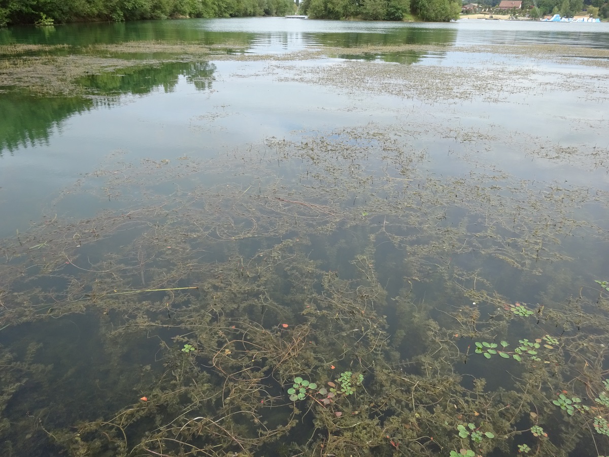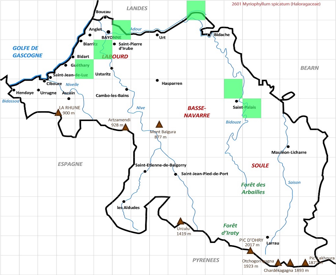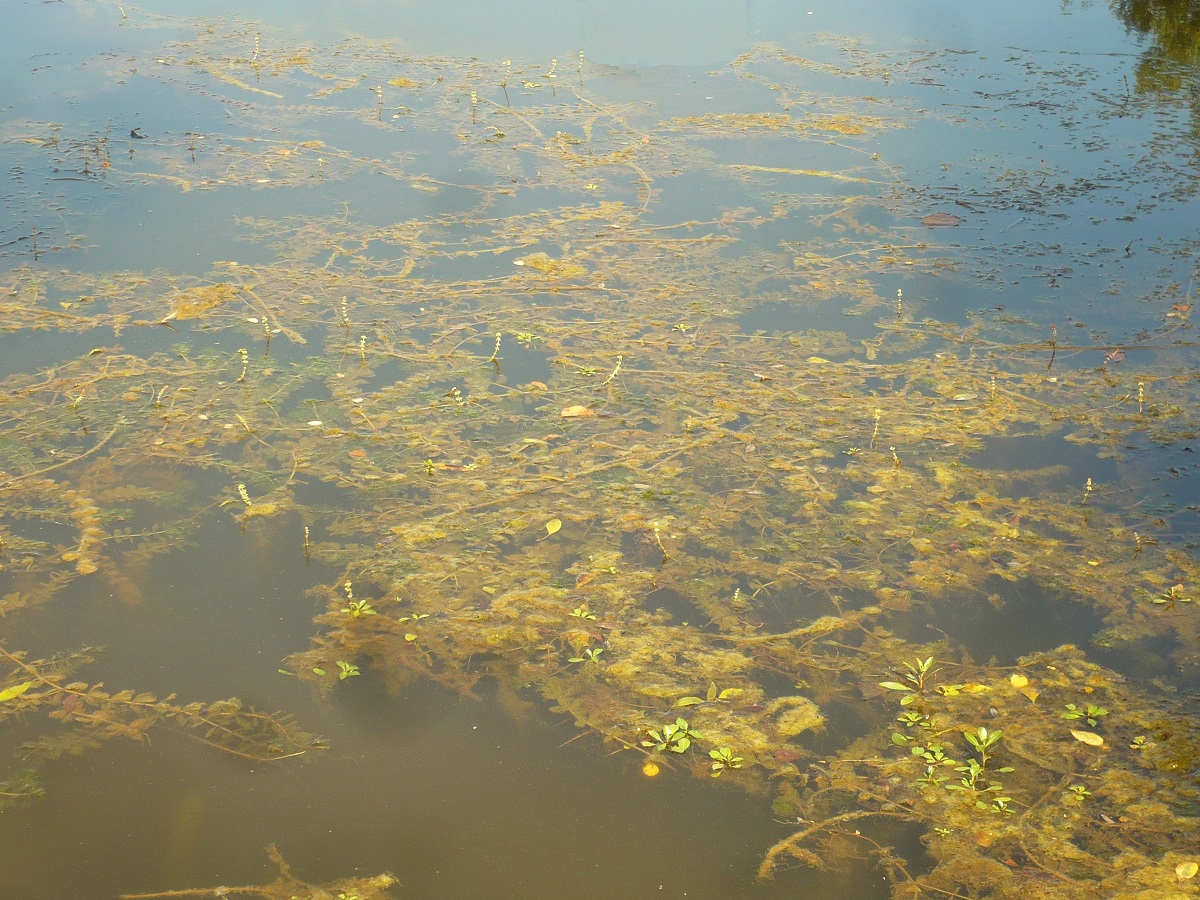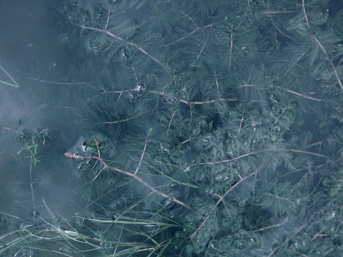 Hydr G – 2-20 dm – Plante robuste, feuilles submergées étagées par 4, à 13-35 fins segments – Épi long multiflore de petites fleurs, ♀ < à 4 pétales rosés et ♂ >, verticillées par 4