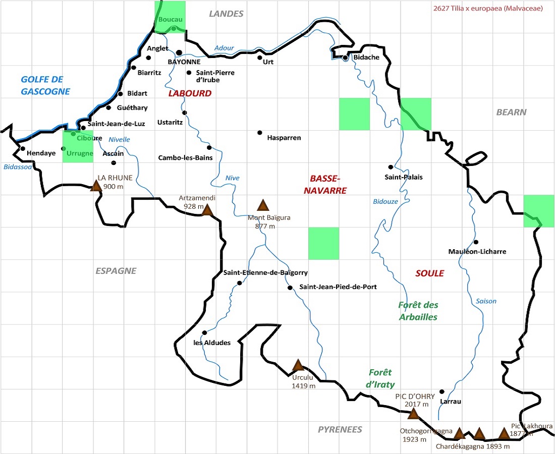 Ph – 10-25 m – Feuilles de L 6-10 cm cordiformes acuminées, dentées, face < + pâle à poils ± roux – Cymes pendantes de 5-10 fleurs, à bractée ± large – Fruit ovoïde de L ≃ 8 mm ± côtelé