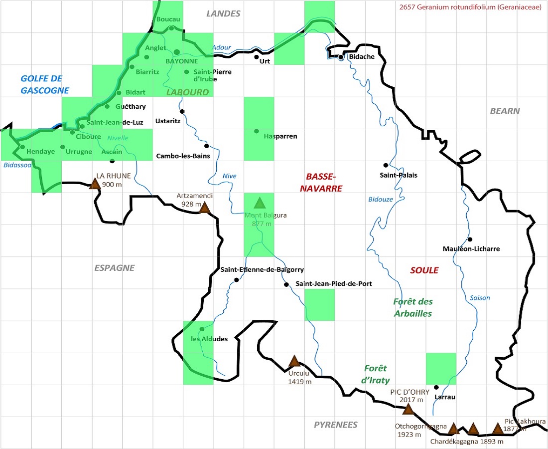 Nom Latin du taxon (Famille) Geranium rotundifolium (Geraniaceae) - Synonymes Latins - nc Nom Français du taxon Géranium à feuilles rondes - Autres Noms Français - nc Nom en Euskara nc - Autres Noms en Euskara - nc Identifiant 2657