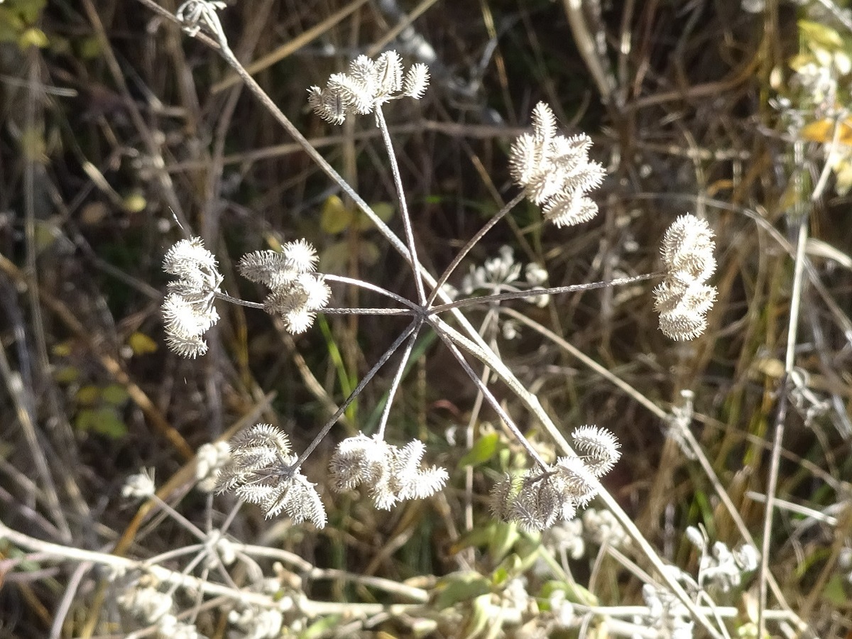 Th – 5-15 dm – Tige rugueuse, feuilles 2-pennées à lobes aigus – Ombelles à 4-12 rayons, fleurs blanches, involucre ± nul – Fruit L de 3-6 mm couvert de longs aiguillons en harpon