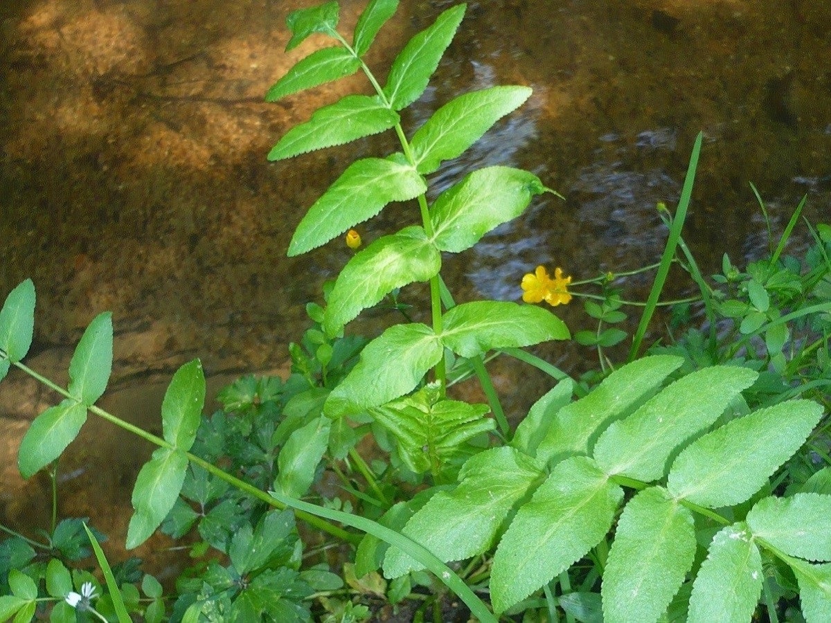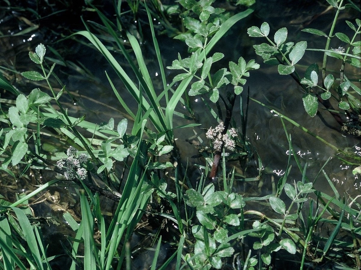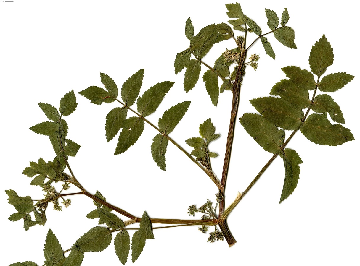 Hc/Hydr Hc – 2-10 dm – Feuilles 1-pennées à 7-13 segments de L ≃ 5 cm ovales dentés – Ombelles ± sessiles à 4-12 rayons, fleurs blanches, 0(2) bractées – Fruit de L ≃ 2 mm ovoïde côtelé