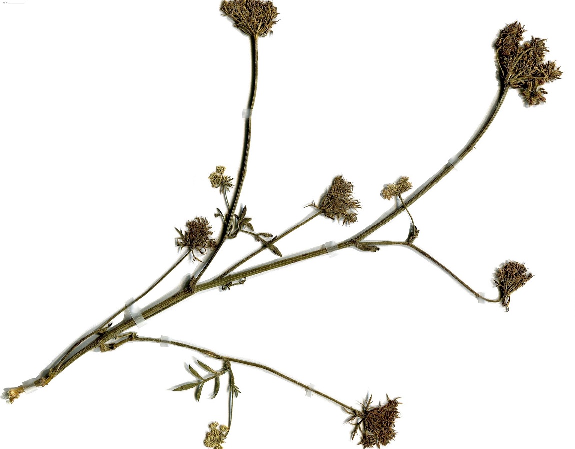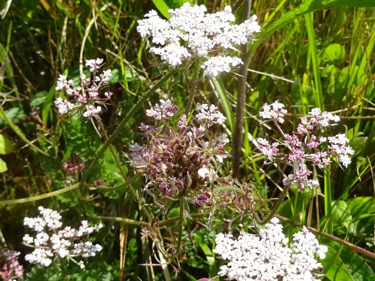 Th/Hc – 0,5-1 dm – Feuilles glabres à lobes linéaires, en forme de triangle – Ombelle de Ø 2-5 cm étalée, 10-15 rayons, fleurs blanches ou rosées, bractées trifides – Fruit de 2-4 mm épineux