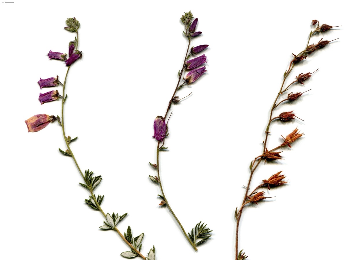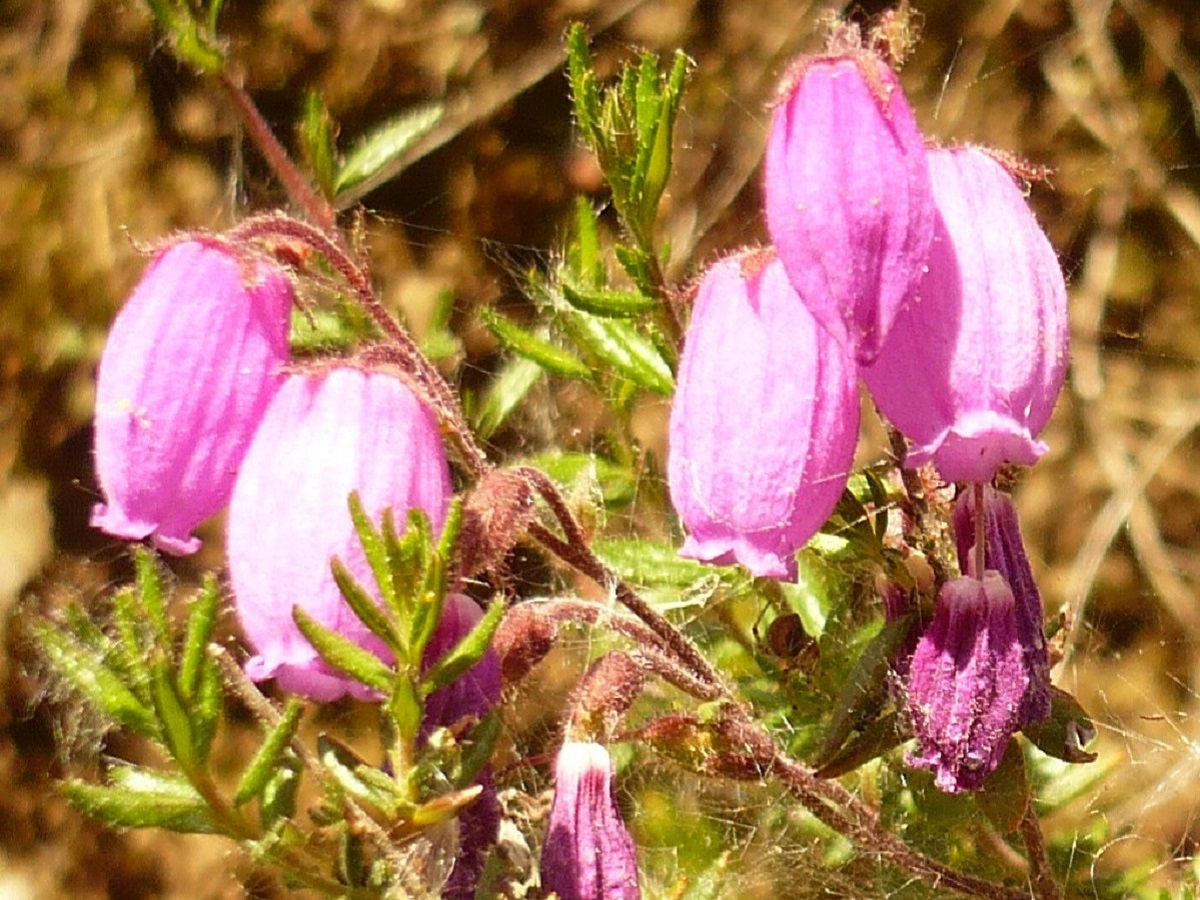 Ch – 2-5 dm – Feuilles de L ≃ 1 cm lancéolées ciliées-glanduleuses, coriaces, à marge révolutée, envers argenté – Fleurs par 3-8 pendantes en grelot L de 9-14 mm rose violacé, lobes courts