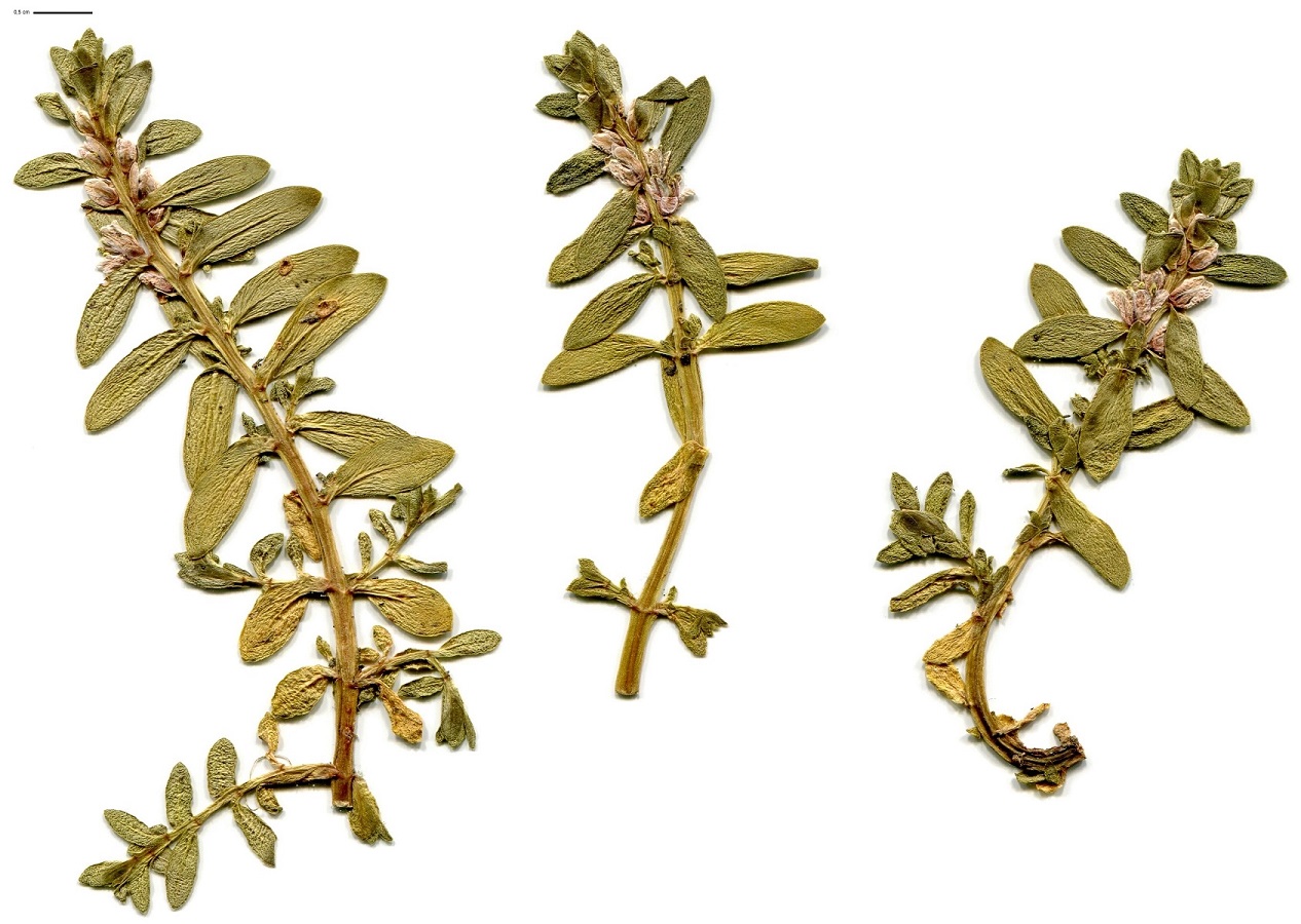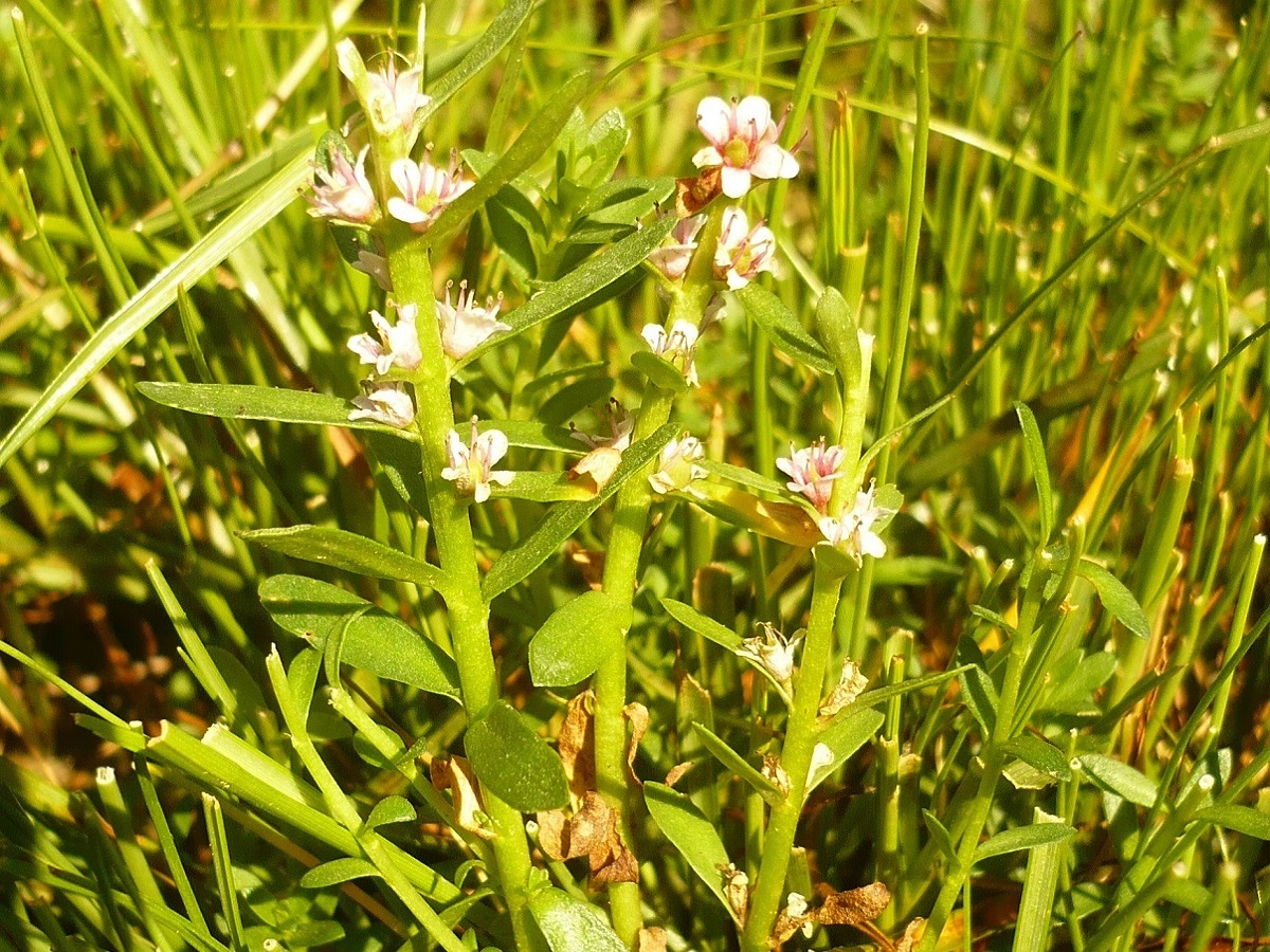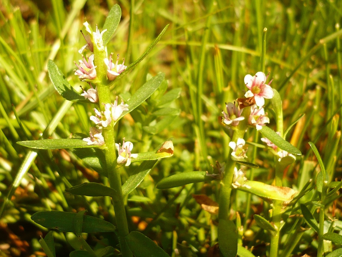 Hc – 0,5-2 dm – Plante ± couchée charnue, feuilles L de 5-15 mm oblongues serrées, sessiles, les < opposées – Fleurs de L 3-6 mm axillaires à 5 sépales ± rosés – Capsule de Ø ≃ 3 mm
