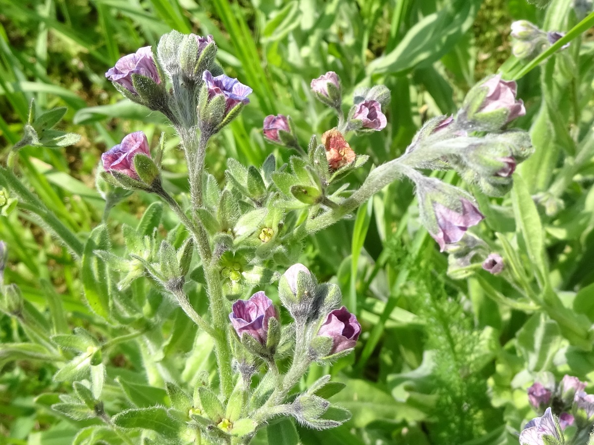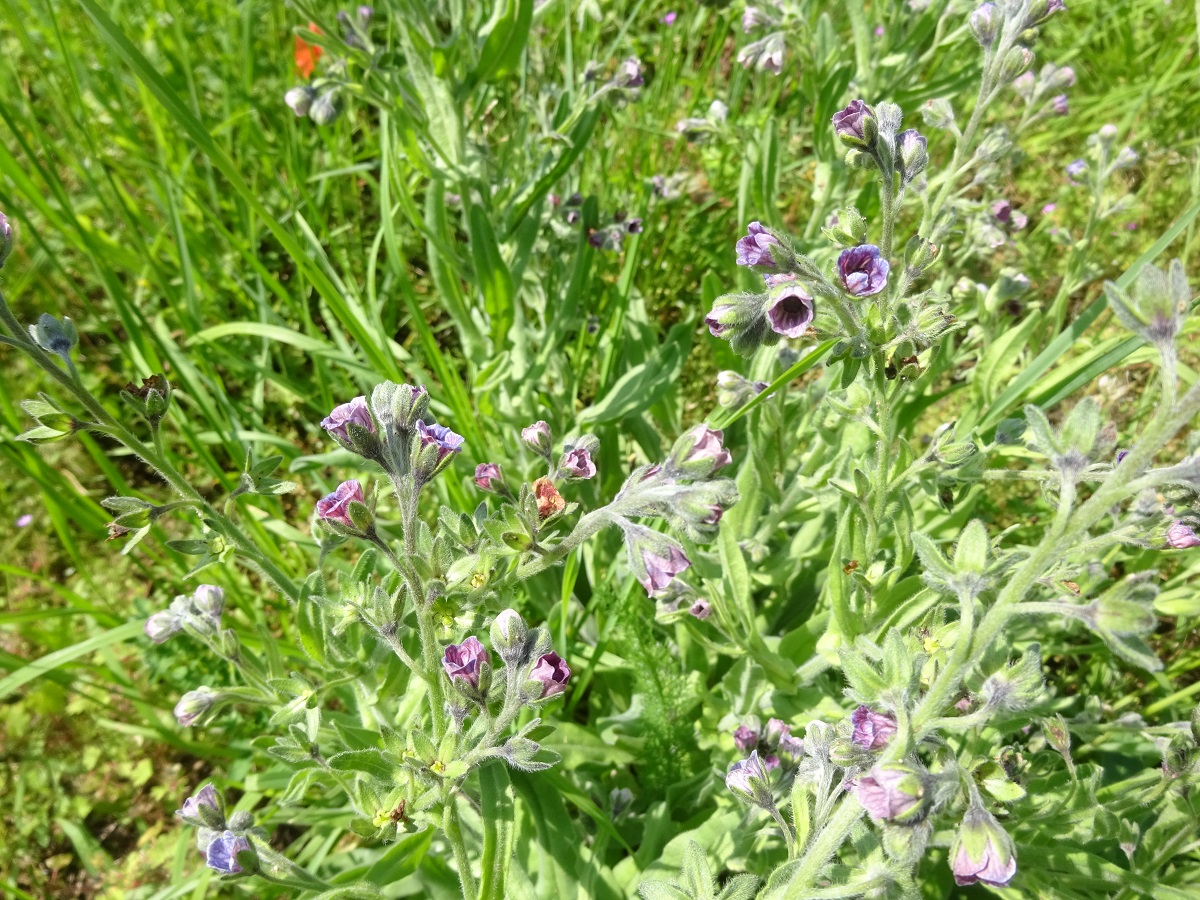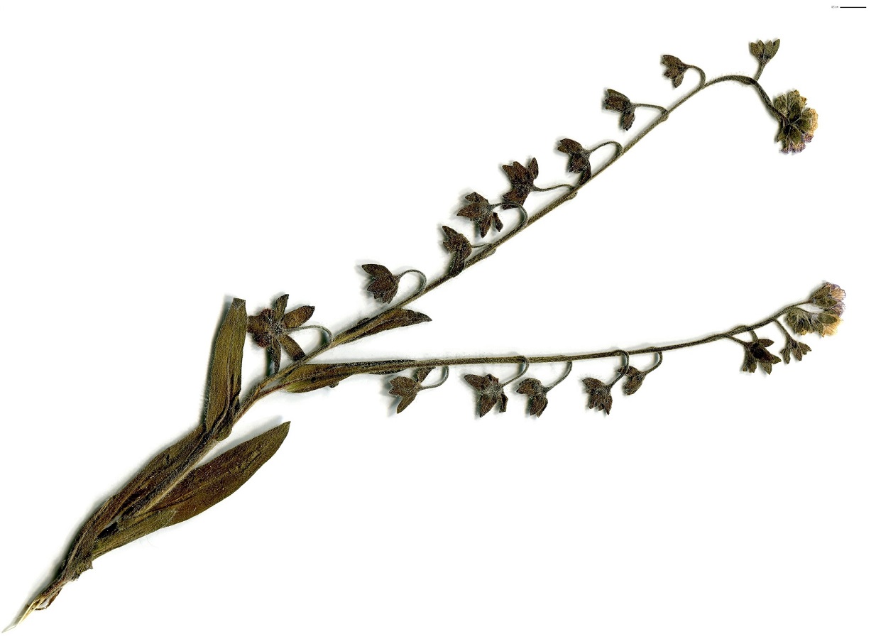 Hc – 3-6 dm – Feuilles oblongues à lancéolées, les < longues, pétiolées à face > velue – Fleurs à corolle de Ø 7-12 mm bleue veinée – Nucules L de 5-7 mm épineuses et verruqueuses