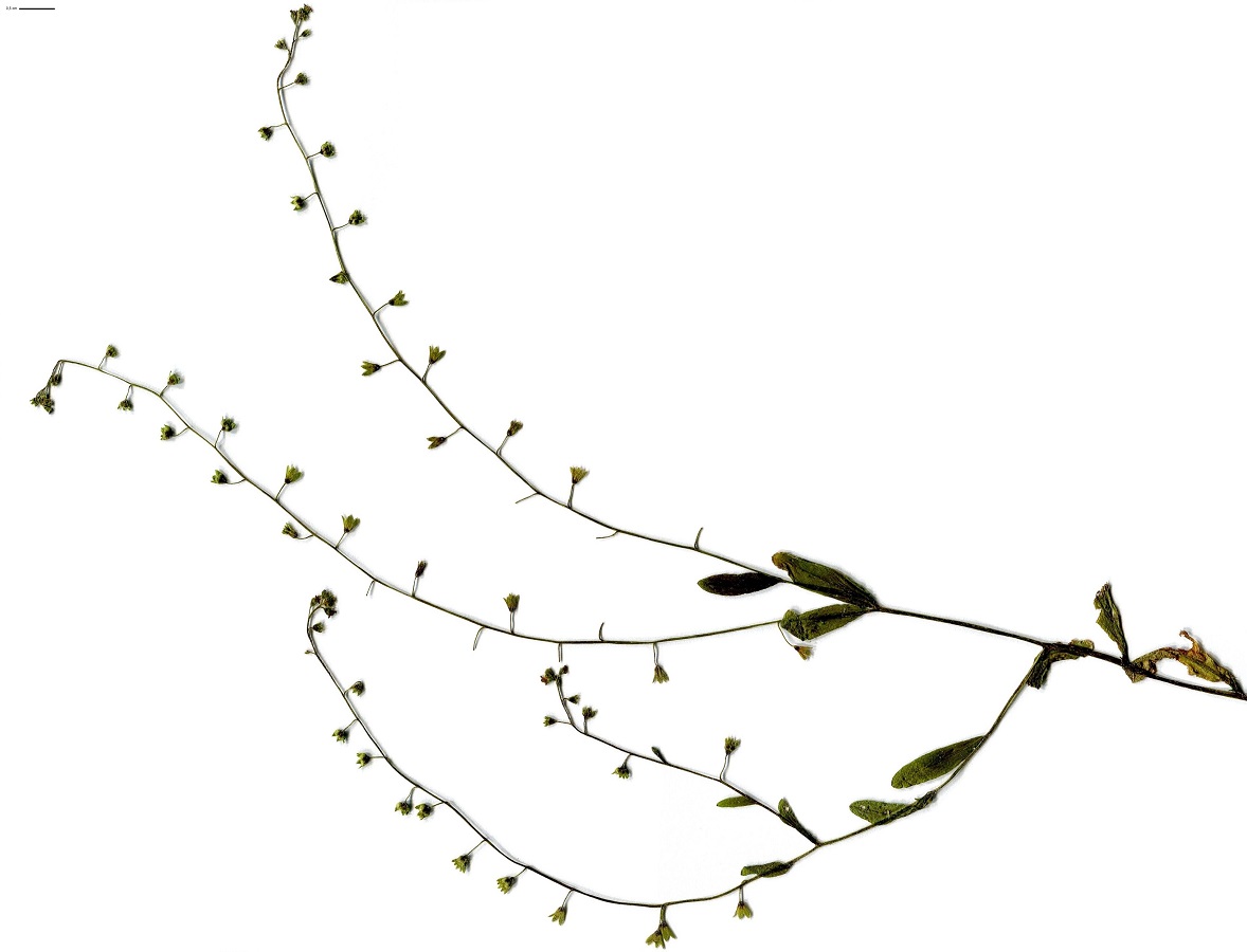 Th – 2-5 dm – Tige ± dressée, feuilles L de 3-6 cm oblongues, face < à poils antrorses – 2 Cymes feuillées, corolle de Ø 4-5 mm bleu pâle, poils apprimés sur le calice – Nucules de L ≃ 1,5 mm