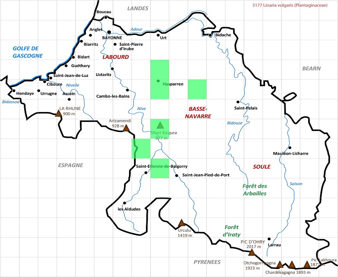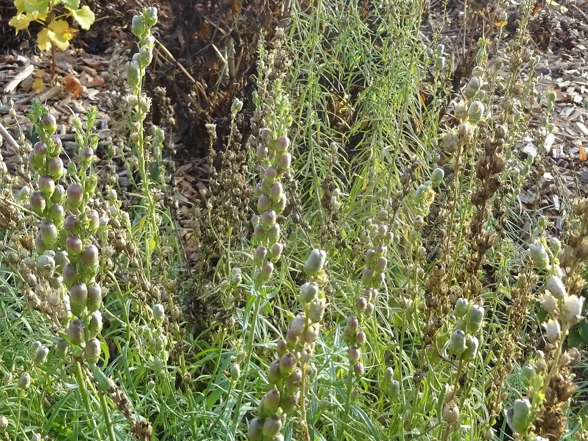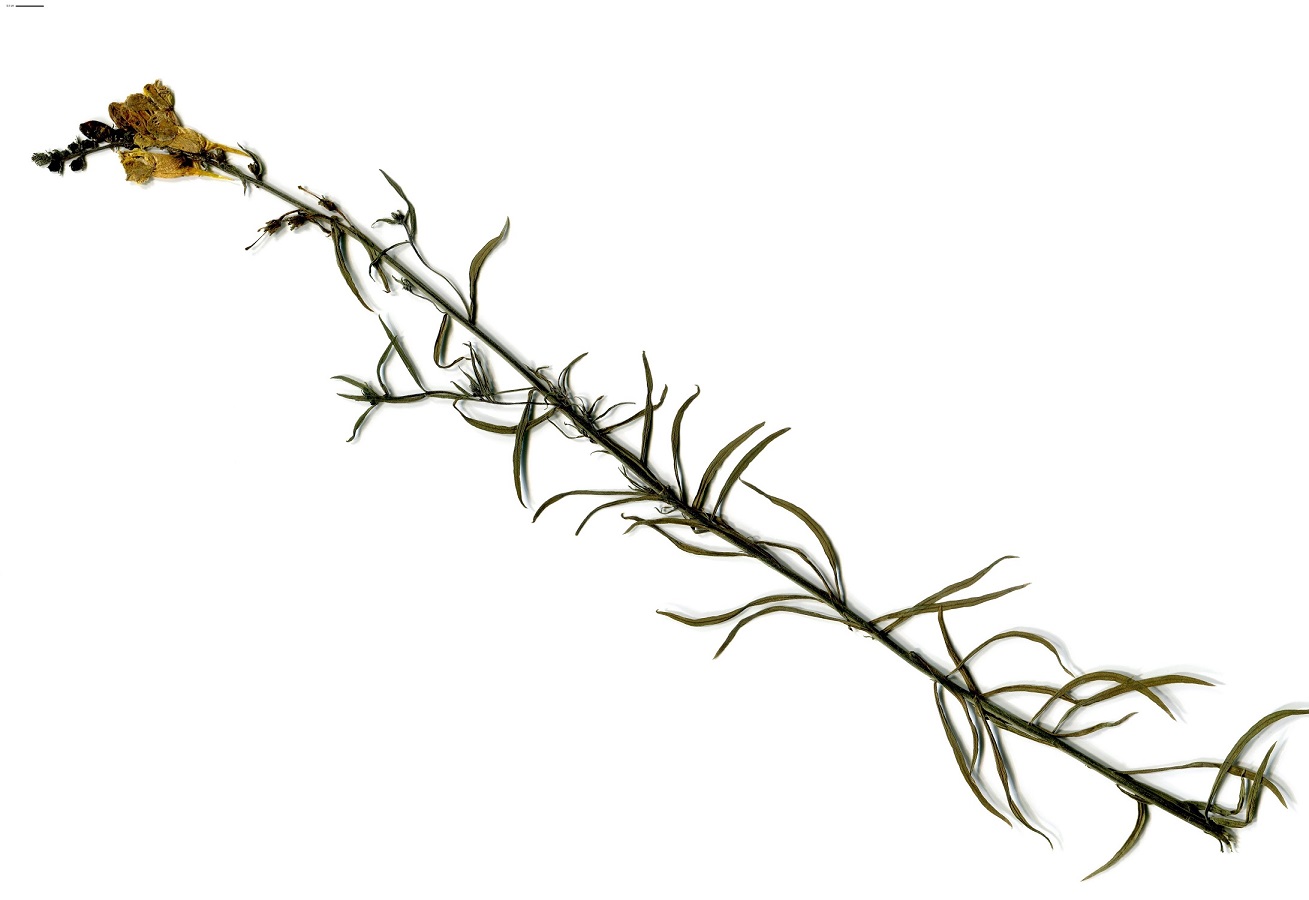 G à drageons – 3-6 dm – Dressée, feuilles nombreuses linéaires mucronées, glauques – Grappe dense, corolle L de 2,5-3 cm jaune, palais orangé, éperon de L ≃ 1 cm ~ droit – Capsule ovoïde