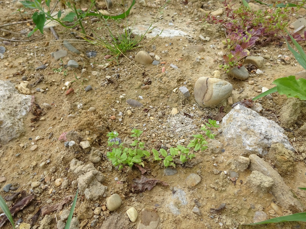 Th – 1-3 dm – Port couché, feuilles petites inégalement crénelées dentées – Corolle de Ø 3-6 mm blanche parfois striée de lilas pâle – Capsule bilobée à longs poils glanduleux