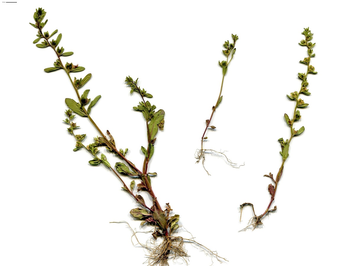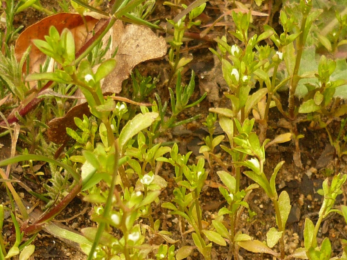 Th – 1-2,5 dm – Tige dressée, feuilles oblongues à spatulées ± dentées, opposées, les < pétiolées – Fleurs de Ø 2-3 mm blanches – Capsule émarginée glabre, style très court