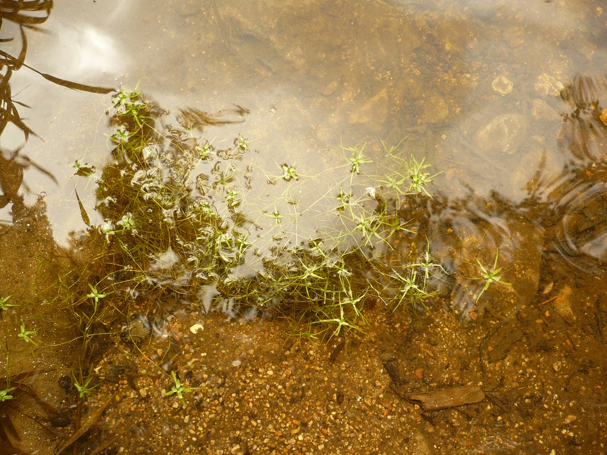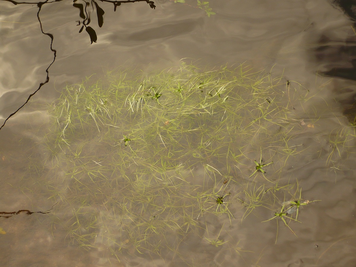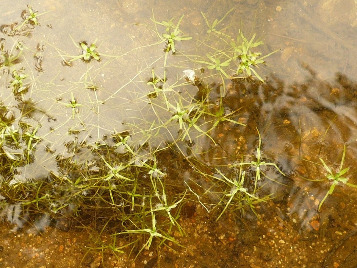 Hydr Th – 1-5 dm – Feuilles submergées opposées linéaires, non ou peu élargies à l’apex ± en V, les flottantes oblongues – Stigmates réfléchis sur le fruit arrondi ailé ± pédicellé