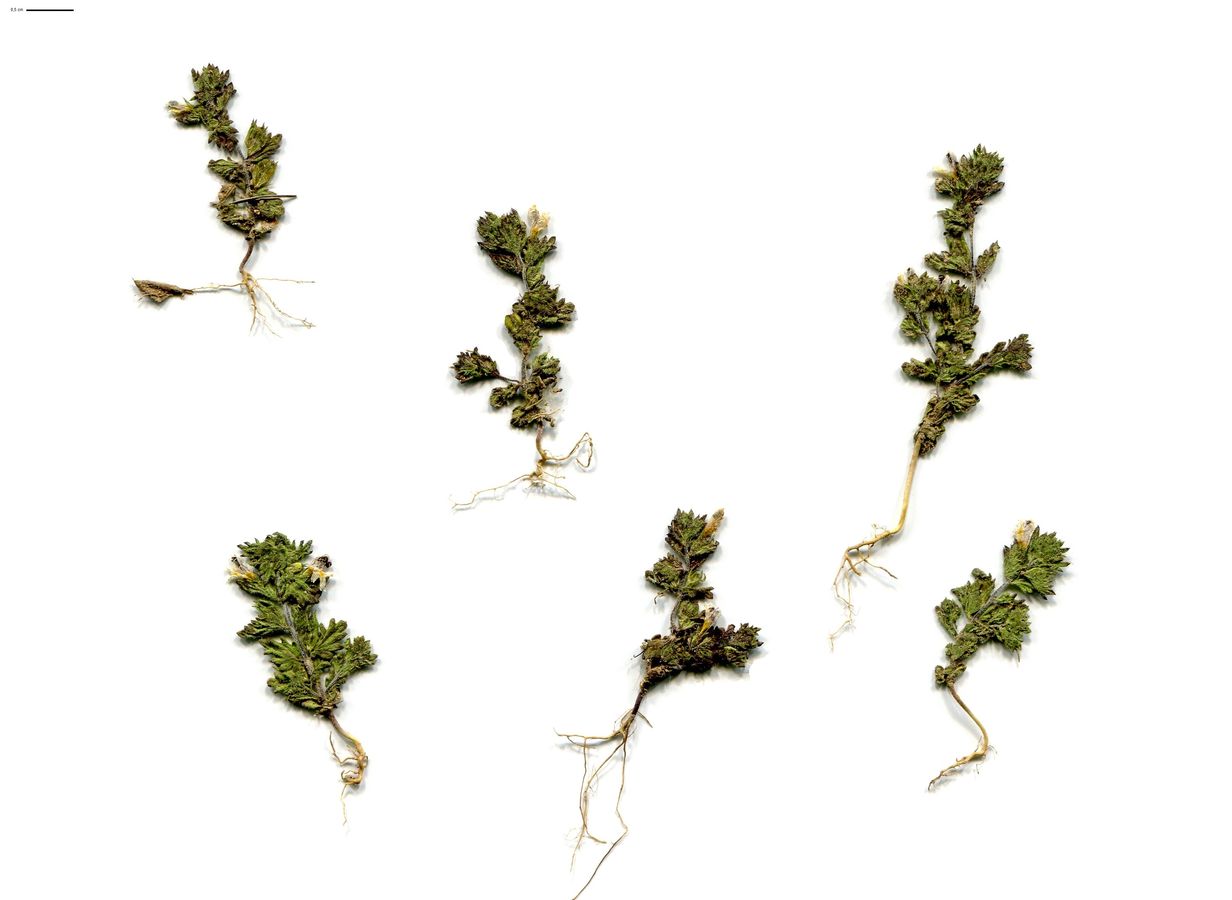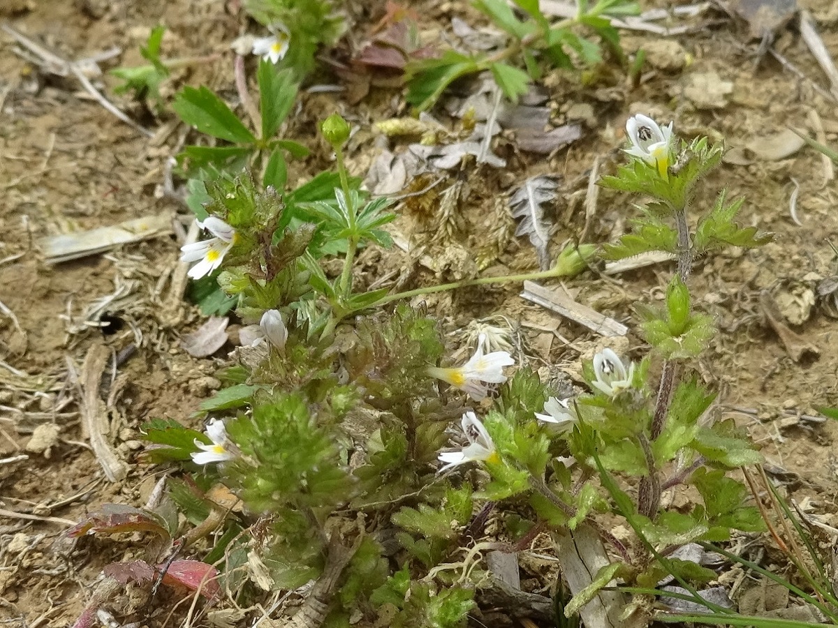 Th SPar – 0,5-2 dm – Villeuse hérissée, feuilles de L ≃ 1 cm ovales à dents aristées – Corolle L de 6-8 mm à 2 lèvres, l’< trilobée, ± jaune striée de violet – Capsule de L 4-6 mm ciliée