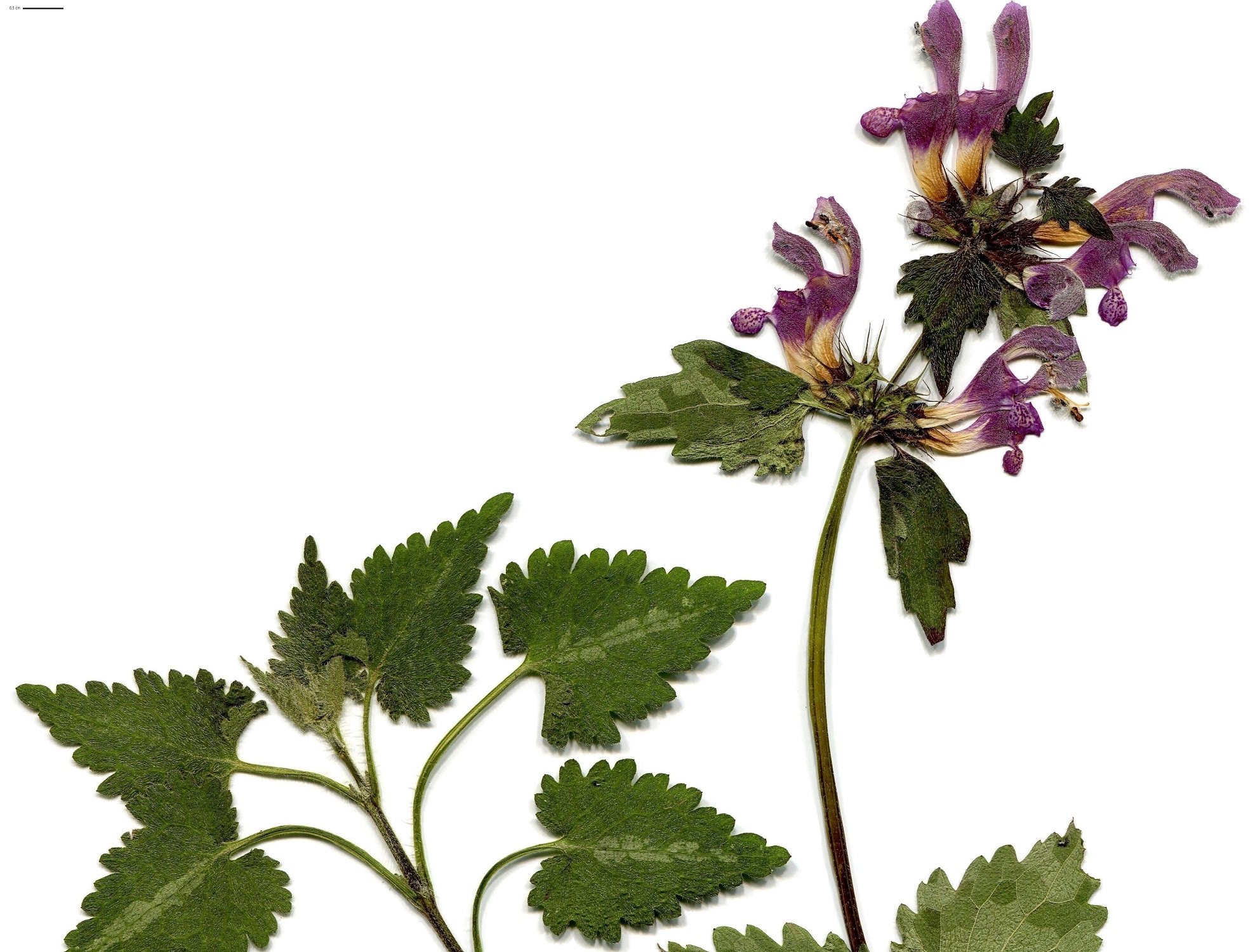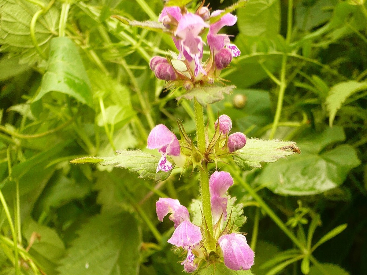 Hc – 3-8 dm – Feuilles ± panachées L de 2-8 cm ovales aiguës crénelées dentées, pétiolées – Corolle bilabiée pourpre rosé L de 2-3,5 cm, lèvre > en casque velu L de 7-14 mm, l’< obcordée